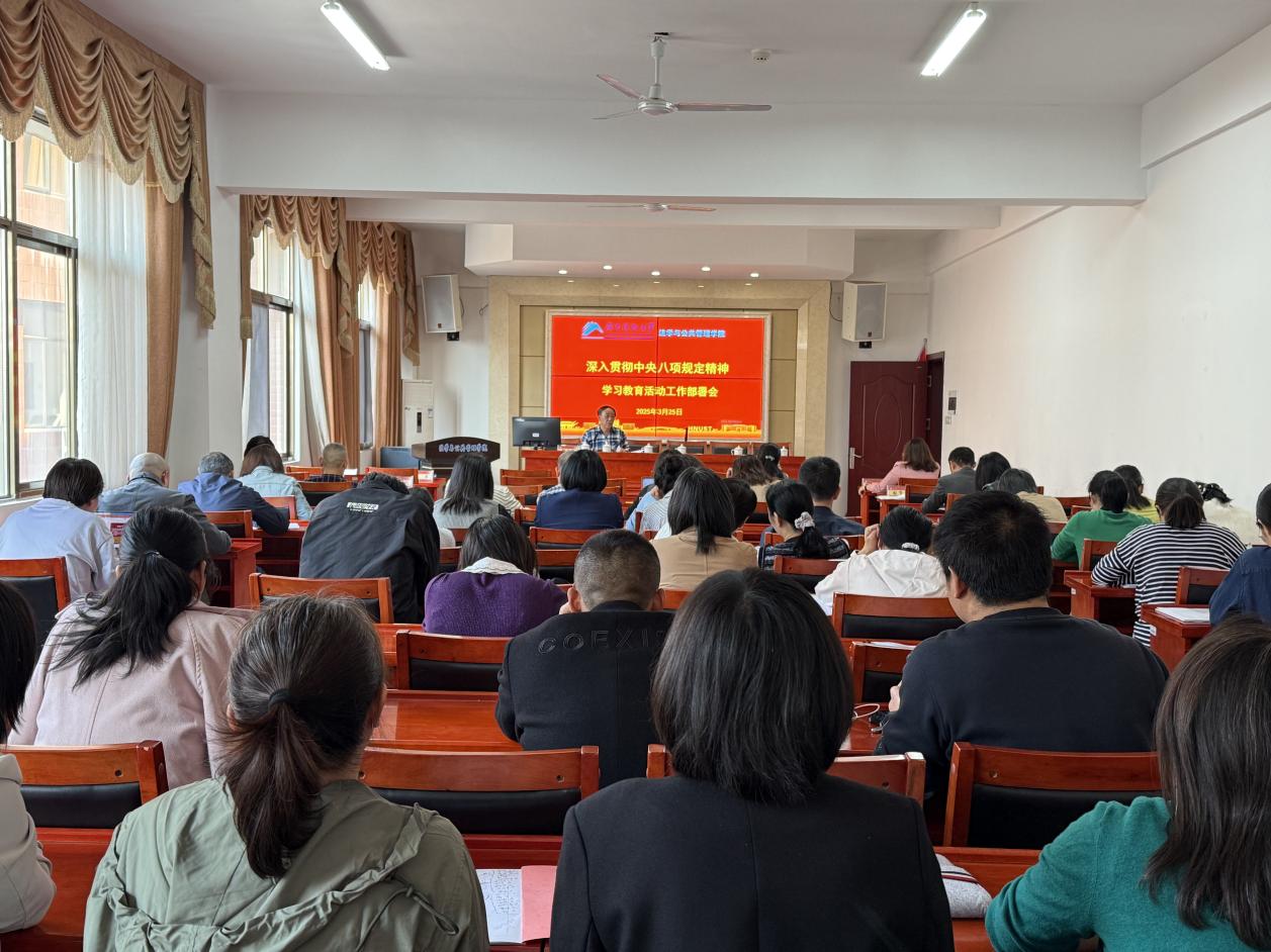 会上,郑海祥书记传达了党中央关于开展深入贯彻中央八项规定精神学习教育的相关文件精神和要求。他指出,党中央决定自2025年全国两会后至7月在全党开展此次学习教育,这是推进全面从严治党、加强党的作风建设的重要举措。习近平总书记高度重视,亲自谋划确定学习教育主题,发表重要讲话,作出重要指示,为开展学习教育指明了方向。全体党员要充分认识到这次学习教育的重要意义,切实增强贯彻落实中央八项规定精神的思想自觉和行动自觉。