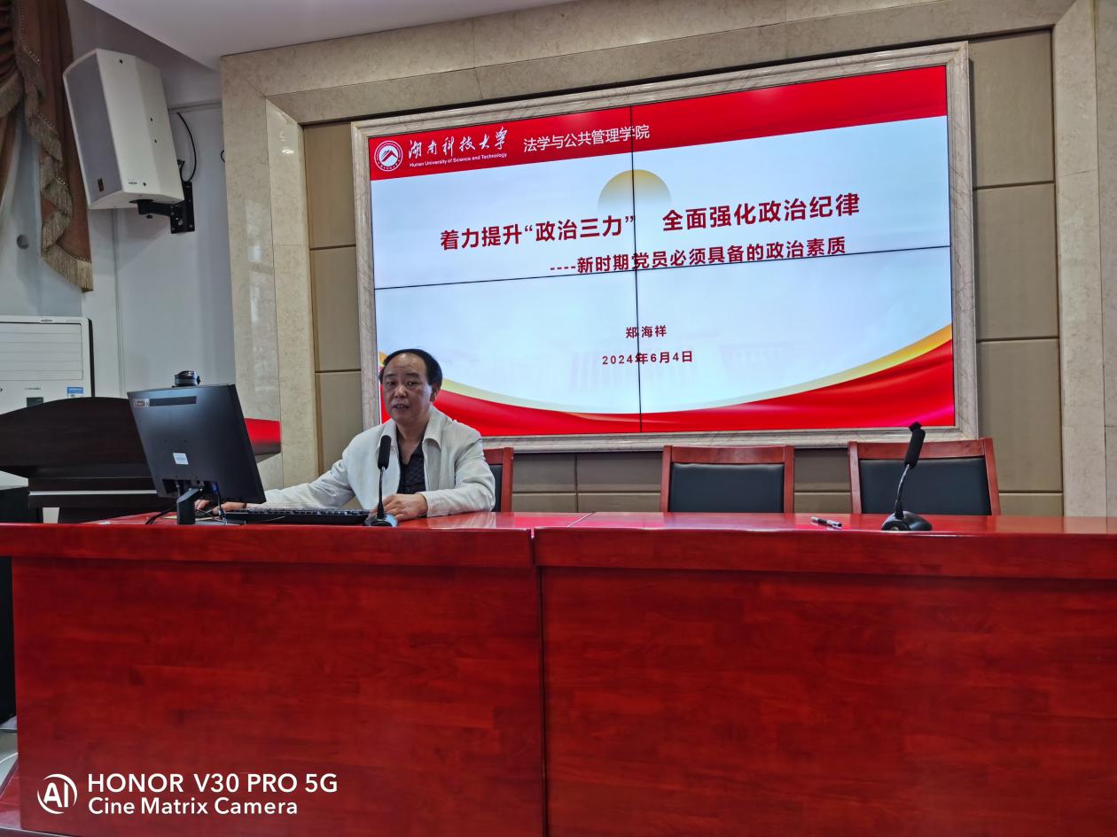 郑海祥同志从“政治三力”的内涵及逻辑关系、党员特别是党员干部如何提升“政治三力”、全面强化政治纪律的要求与自觉等三方面展开讲解。郑海祥强调,政治判断力决定工作的方向,政治领悟力事关执行的效果,政治执行力关乎工作的成效。我们要提高政治判断力,做政治上的明白人;提高政治领悟力,始终同党中央保持高度一致;提高政治执行力,抓好党中央精神贯彻落实。善于把握政治大局,从政治上观察和处理问题,使讲政治的要求从外部要求转化为内在主动,准确识变、科学应变、主动求变,善于在危机中育先机、于变局中开新局。