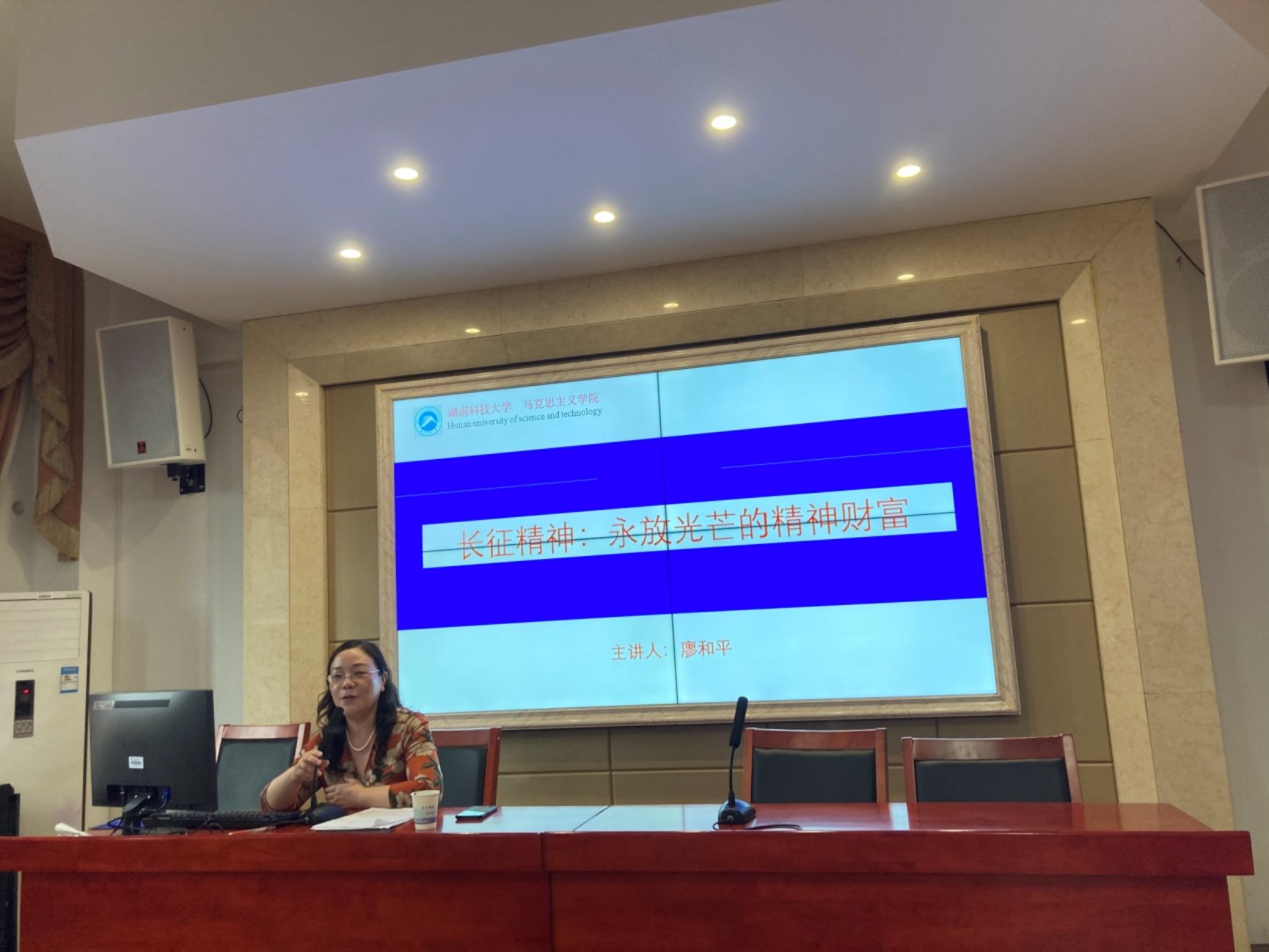 廖和平教授深入浅出,采用丰富详实的课件以及相关视频穿插讲解了长征的起因、概况及其过程,并重点讲解了长征精神及其现实要求。红军长征粉碎了国民党反动派“围剿”红军,扼杀中国革命的企图,使中国革命转危为安,铸就了千锤百炼的精华——长征精神。廖教授将其概括为:面对现实,实事求是的精神;坚定信念,坚韧不拔的精神;不畏艰险,艰苦奋斗的精神;心系他人,无私风险的精神;顾全大局,团结协作的精神。作为中国共产党人崇高理想和革命风范的结晶,长征精神所表现出的革命精神和优良作风在当今仍具有历久弥新的现实意义。