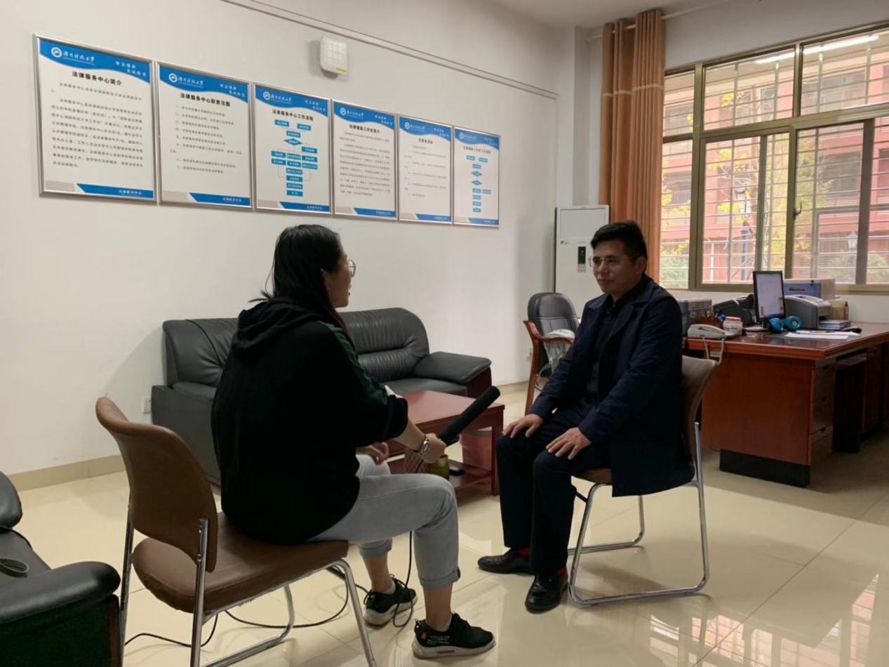 易卫中老师和杜美辰同学承办的法律援助案件进行了主要拍摄。同时,摄制组对法援工作处分管领导周飞跃副校长进行了采访,周校长从法援工作处开展以来的卓越成果、对中彩金项目的评价等方面进行了介绍,周校长还表示希望中彩金项目能进一步加大对高校法律援助的支持。而后,徐德刚院长评价了案件为弱势群体维护合法权益所起到的积极指引作用,同时表达了法援工作处在未来会发展得越来越好的美好愿景。