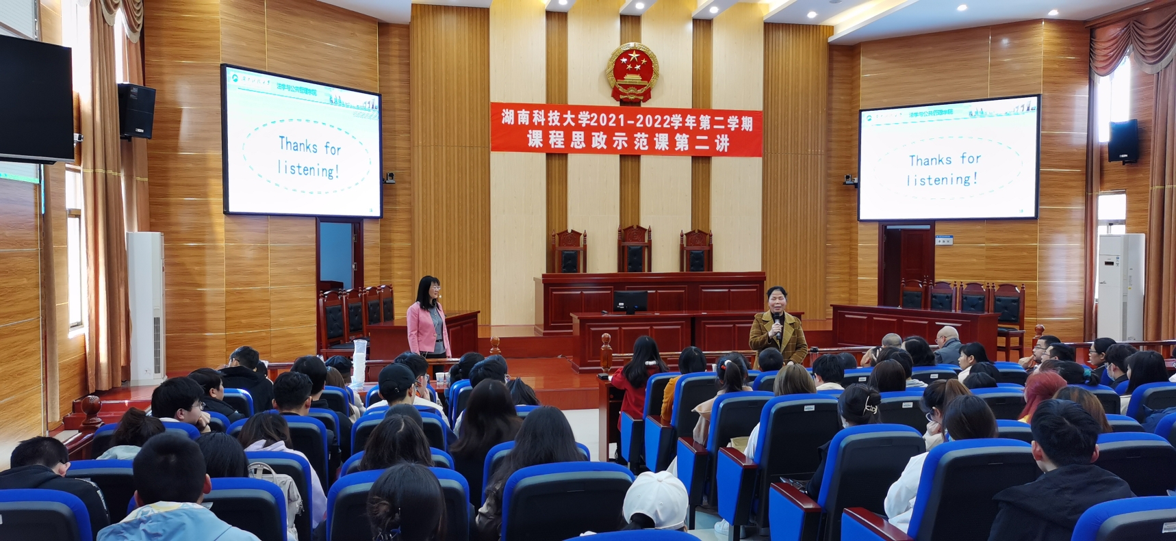 打造高校课程思政课堂是积极落实习近平总书记重要指示精神的实践探索,已经成为高校教育改革的一个重要方向。2022年3月8日下午,湖南科技大学“课程思政示范课”第三讲在法管360吧