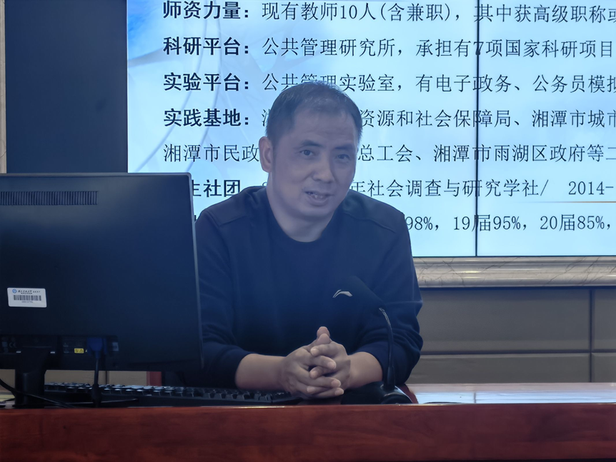 随后,法律系主任吴四江老师和公共管理系主任戴年红老师分别就两个专业的发展历史、人才培养目标、培养方案设置、专业就业方向、未来的学习规划进行了全面而详细的介绍。