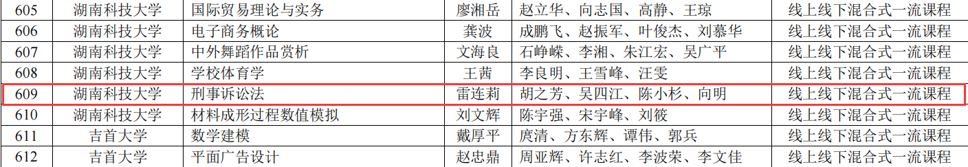 徐德刚教授团队的《宪法学》、宋智敏教授团队的《行政法与行政诉讼法(1)》、雷连莉博士团队的《刑事诉讼法》三门课程分别获得省级线下、线上、线上线下混合式一流课程认定。