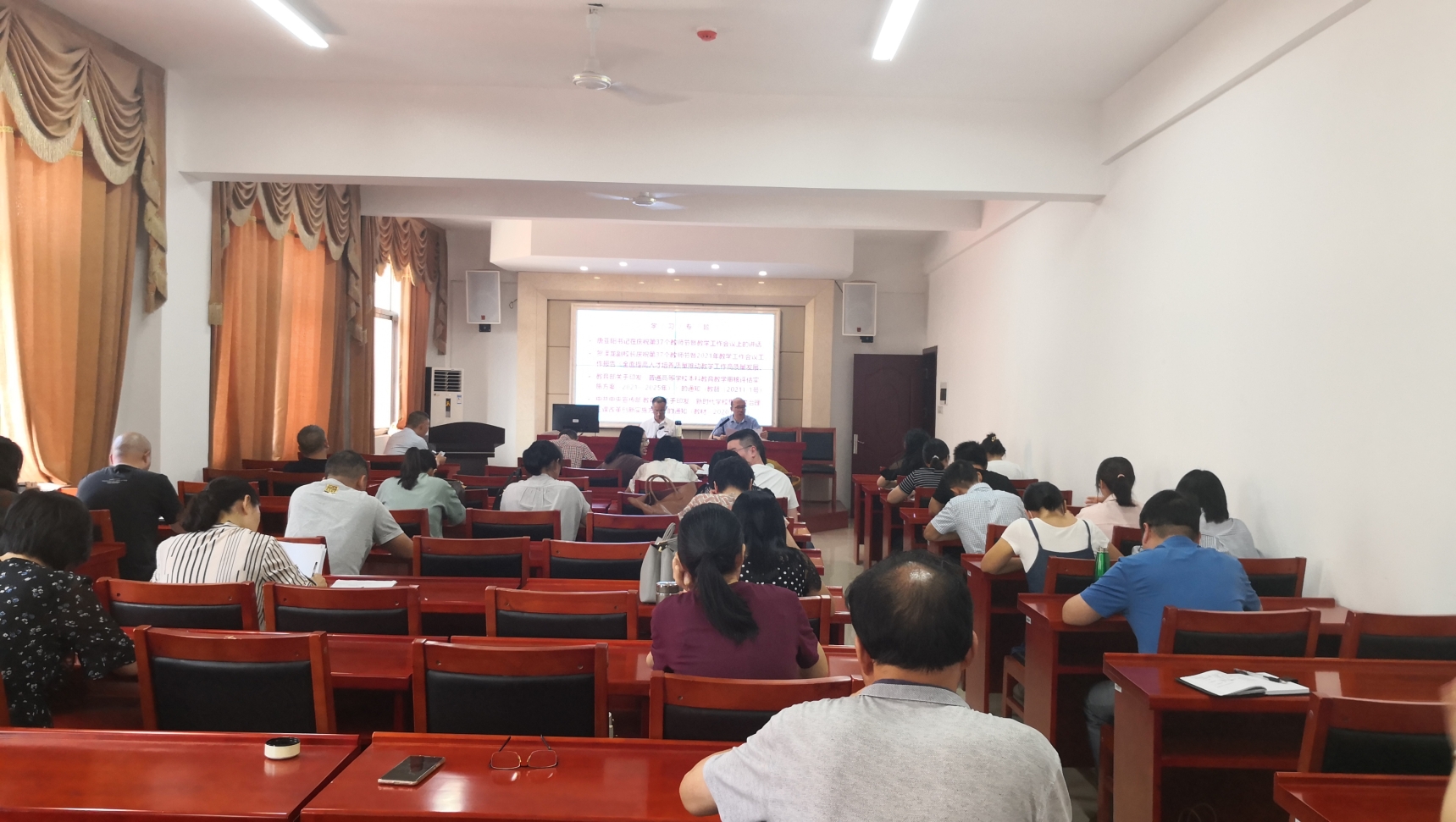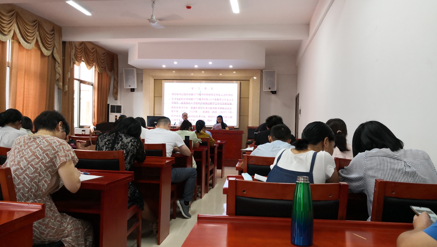 会议第一项为专题学习,由教学副院长李云霖教授带领全院教师学习我校庆祝第37个教师节暨教学工作会议精神。李云霖教授首先带领大家学习了“唐亚阳书记在庆祝第37个教师节暨教学工作会议上的讲话”和“贺泽龙副校长庆祝第37个教师节暨2021年教学工作会议工作报告”,并结合讲话要点与360吧