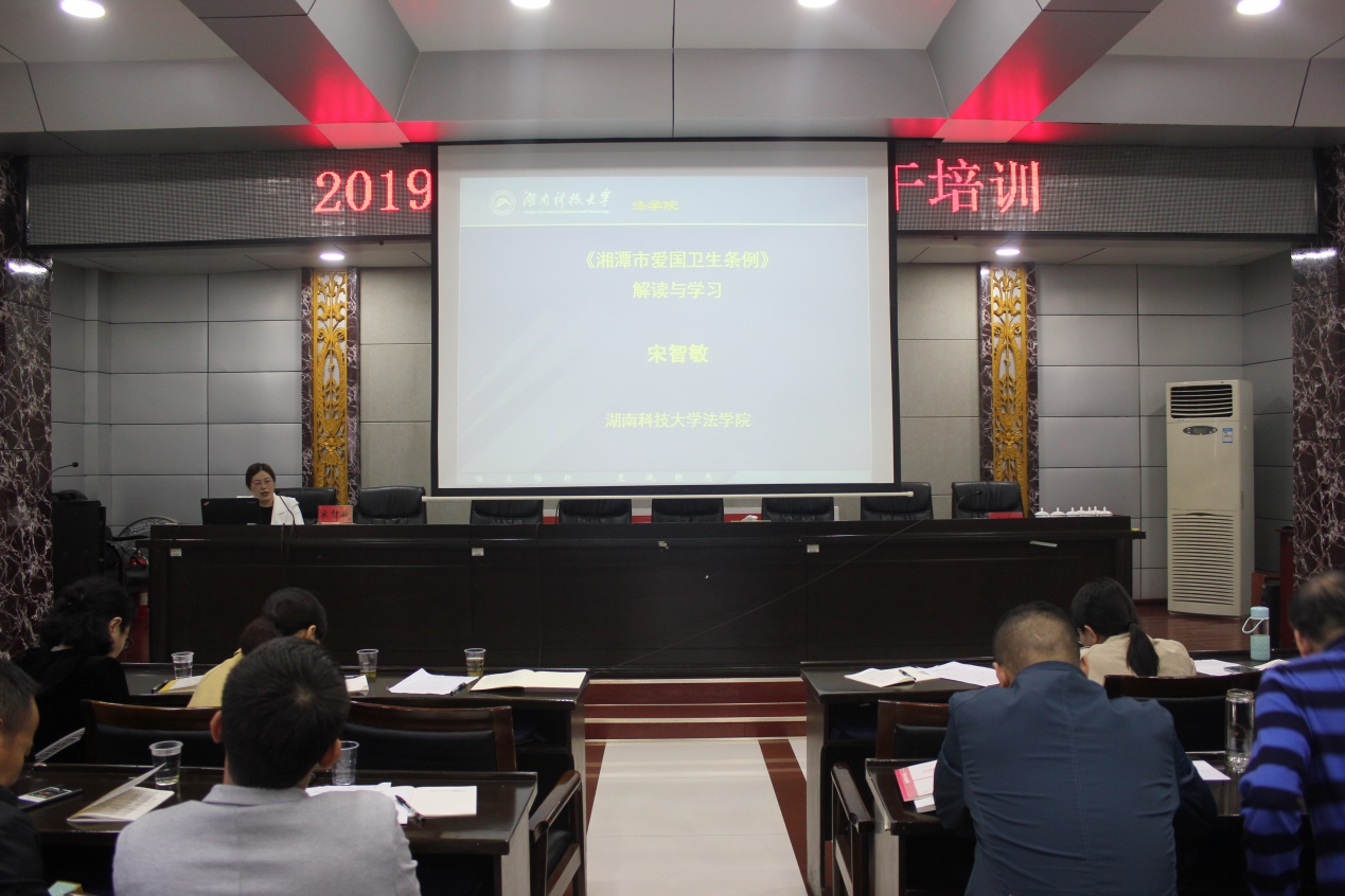 徐德刚教授、李云霖教授、宋智敏教授应邀为学员授课。徐德刚院长开展了《宪法修改与实施》、《习近平依法治国思想的内容与实践》的主题报告,李云霖教授做了《政府信息公开条例修改的背景、内容与实施》的专题讲座,宋智敏教授则以法规主持起草者的身份带领大家一起学习了湘潭市第五部地方性法规《湘潭市爱国卫生条例》。三位教授的讲座既有理论高度,又有问题意识,受到了全体学员的高度好评。市司法局、市城管局等单位纷纷表示,今后将进一步加强与我校的合作,实现湘潭法治建设理论与实践的互动互赢。