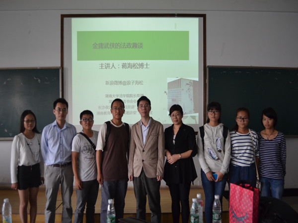 副院长喻军、法律系主任刘敏以及宋智敏老师出席讲座。 讲座伊始,一句“飞雪连天射白鹿,笑书神侠倚碧鸳”就立刻把同学们带入了金庸的武侠天地。蒋博士以该经典诗句引出了本次讲座的主要内容:金庸与政治法律、政治之问、儒道佛政治观。接着, 蒋 博士以金庸小说人物为依托,讲述了其作品中蕴含的深刻的哲学性和政治性命题。其中他讲到:“ 倚天屠龙的争夺其实体现了‘律者,定纷止争’这一古训;江湖恩怨映射着法律与复仇的关系;有时杨过为追求正义,惩奸除恶而取他人性命是将法律问题道德化 ” 。这些独到的见解都为 2014 级法学学子开拓了不一样的视野。 蒋 博士最后总结,金庸作品与法律的相通点就在于:这其中体现着自由人格的问题,体现着儒家之正义,道家之无为,佛家之悲悯的法制思想,鼓励大家捍卫法学,才能笑傲江湖。 有人曾指出:一个圆满的政治制度,能造福千万人,使无数人放下手中的刀剑。我想,今天的讲座就是对这句话最好的答复。 (责任编辑:admin) |