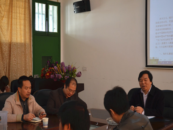 邀请,在十教606为2011级思想政治教育专业的学生献上一场精彩的讲座。教务处副处长罗建文老师、副院长陆自荣老师、喻军老师、政治系系主任毛小平老师等出席本次讲座。 孙伟平教授结合对毛泽东《反对本本主义》一书的感悟,深入浅出地分析了“本本主义害死人”。首先,孙教授分析说明中国的社会主义探索之路曾深受西方资本主义社会价值观的影响,并突出强调了中国目前整个社会道德价值观存在危机,中国的内部文化价值观和社会价值观都存在本本主义现象。紧接着,孙教授结合中国艰难的革命历程和社会主义建设实践的探索,具体解读了毛泽东的实事求是思想,强调我们这条革命道路是在反对本本主义的过程中找到的,无论什么时候,我们都要搞清基本具体的情况,结合实际制定方针政策。 最后,罗建文老师总结道:“孙教授的讲解鞭辟入里,从哲学的思维角度深刻分析了毛泽东的反对本本主义思想,值得大家在专业学习中认真思考和反省自我, 希望大家能真正做到不唯上、不唯书、只唯实,认真贯彻落实实事求是的思想路线。” (责任编辑:admin) |
