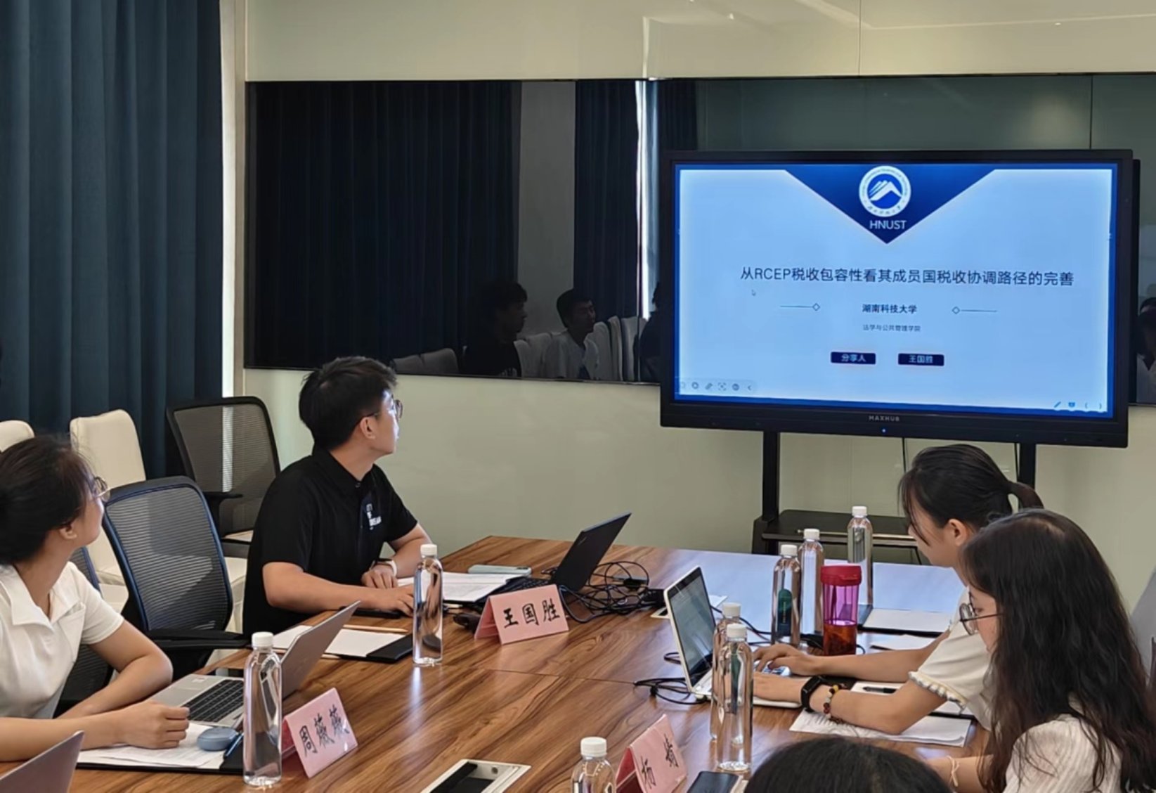 22级法律硕士研究生王国胜作了题为《从RCEP税收包容性看其成员国税收协调路径的完善》的汇报,得到了评议专家的认可。