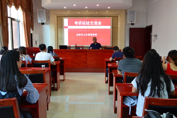 于文科楼A425举行公管专业考研经验交流会。此次经验交流会旨在为公管专业学子们“答考研之疑,授专业之术,传为学之道”。出席此次会议的嘉宾有院长徐德刚,副院长陆自荣,党委副书记叶军,公管系年级主任戴年红,公管系专业老师袁玉明、王明、王慧慧、尚天晓。会议邀请了13级公管专业的罗通、王春梅、王菲同学分享他们考研成功的经验。14级公管专业有考研意向的部分同学参加了会议并仔细聆听。