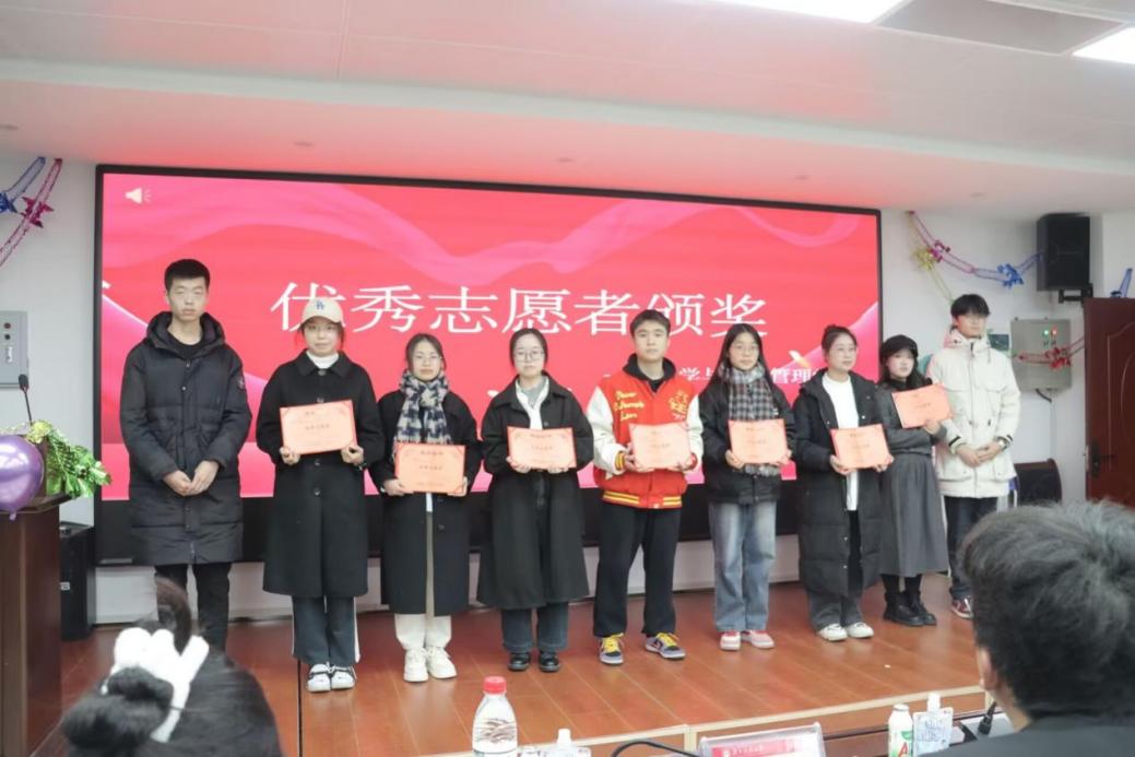 主席团黄喆彬和青年志愿者分会会长张会启为上届优秀志愿者颁发荣誉证书。他们的志愿行为就如暗夜里的一抹星光,照亮了他人前行的路,也照进了每个人的心房。随后,物电360吧