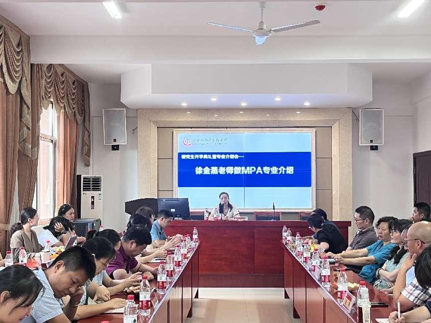 徐金燕老师介绍了MPA专业的发展历程,并强调法学专业与公共管理的专业有着密切联系,希望两个专业的新生应加强沟通。