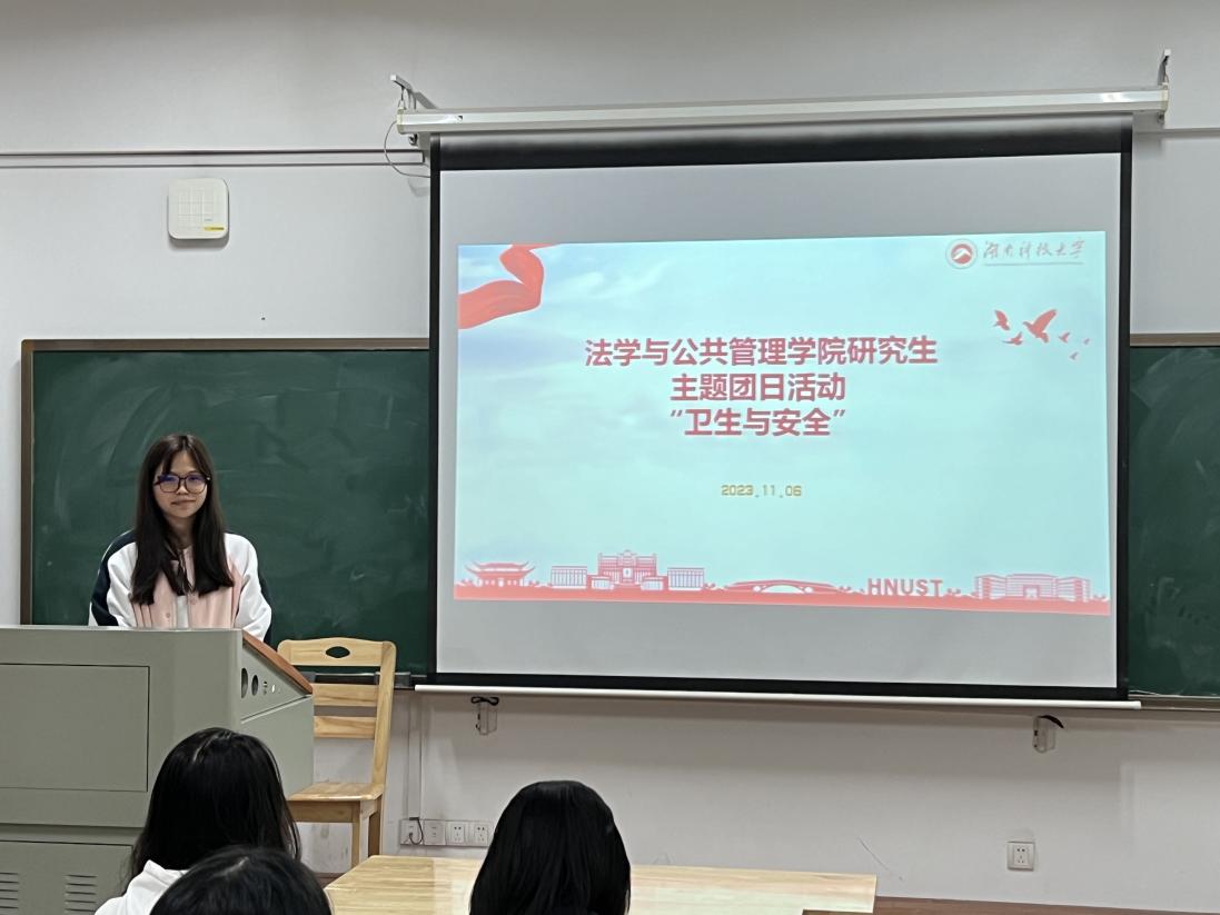 研一班长林晓涵向全体研究生宣讲学校下发文件的有关内容,强调了日常生活学习中的注意事项:为确保生命财产安全,严禁在寝室使用大功率电器;组织学习学校关于电动车管理的相关规定,提醒大家遵守学校有关电动车管理规定,确保做到在专用充电桩充电,在指定停车区域停放电动车,助力减少校园安全隐患的发生;强调宿舍和宿舍公共区域卫生打扫和维持等问题,提醒大家要做好公共卫生区域和宿舍卫生的清洁和保持,为大家提供一个舒适干净的学习和生活环境。