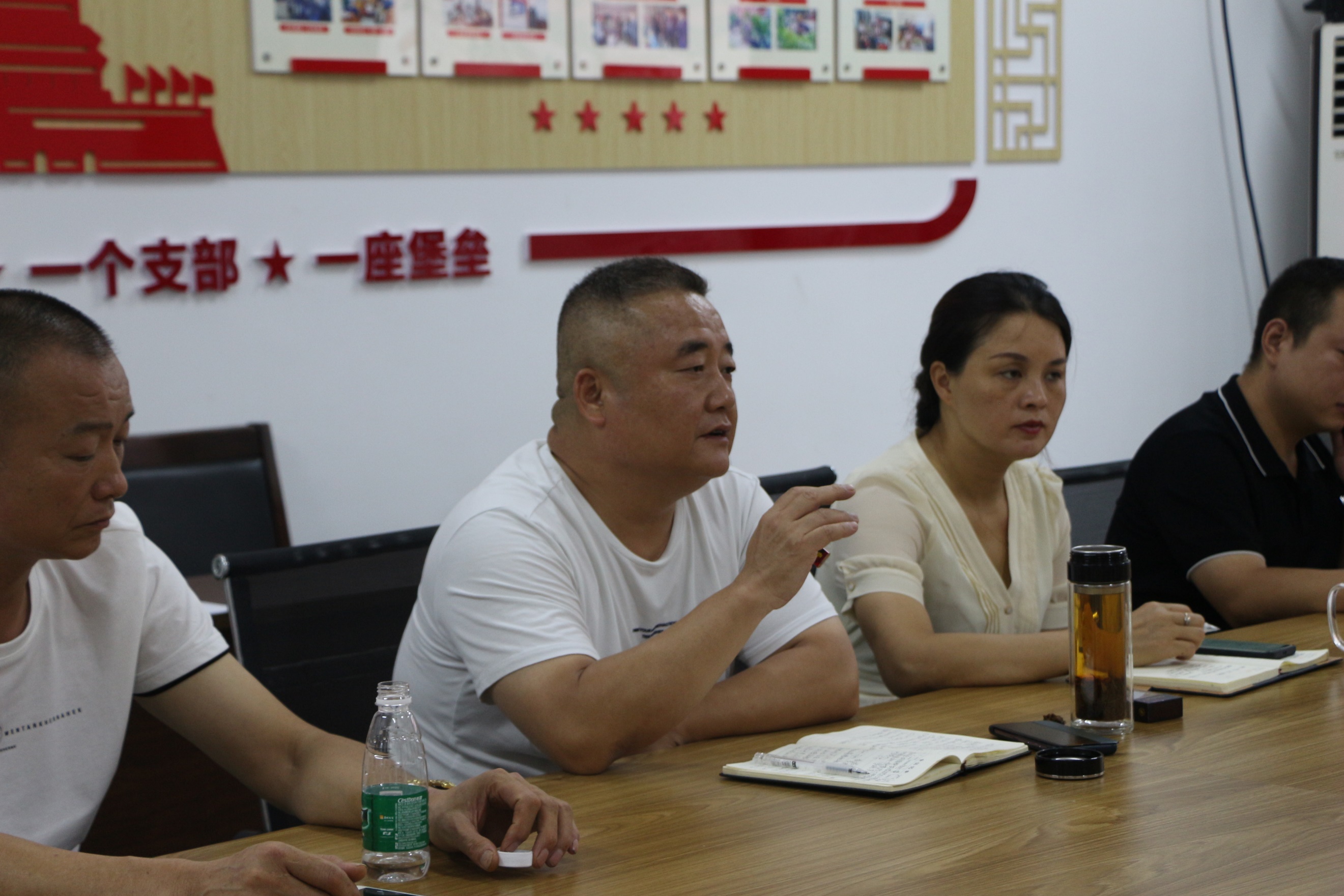 部分学生干部,与杉山社区党委书记居委会主任罗自光、党委副书记居委会副主任彭海均、党委副书记刘利平、党委委员谢金钱等就本次暑期“送法下乡”和“三下乡社会实践活动”的相关内容进行深入沟通、安排。