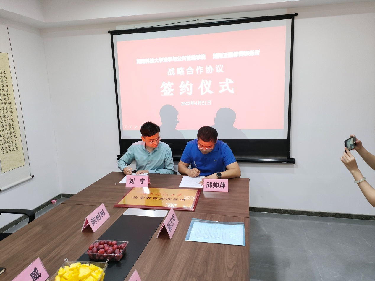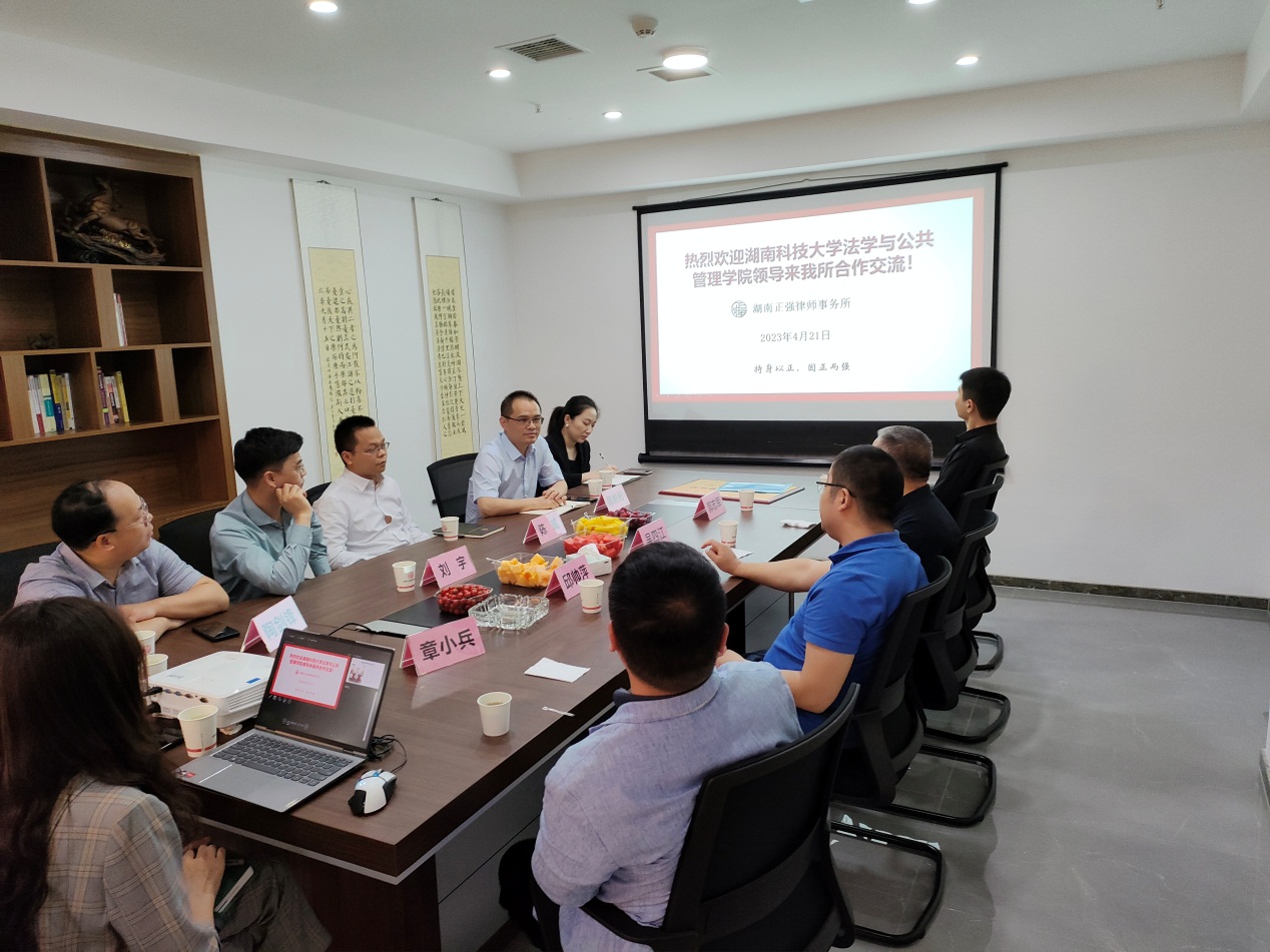 与湖南正强律师事务所举行法学教育实践基地授牌仪式,双方签订了战略合作协议,并聘请正强律师事务所主任刘宇律师为湖南科技大学法律硕士专业学位实践型硕士生指导教师。出席本次仪式的有法管360吧
