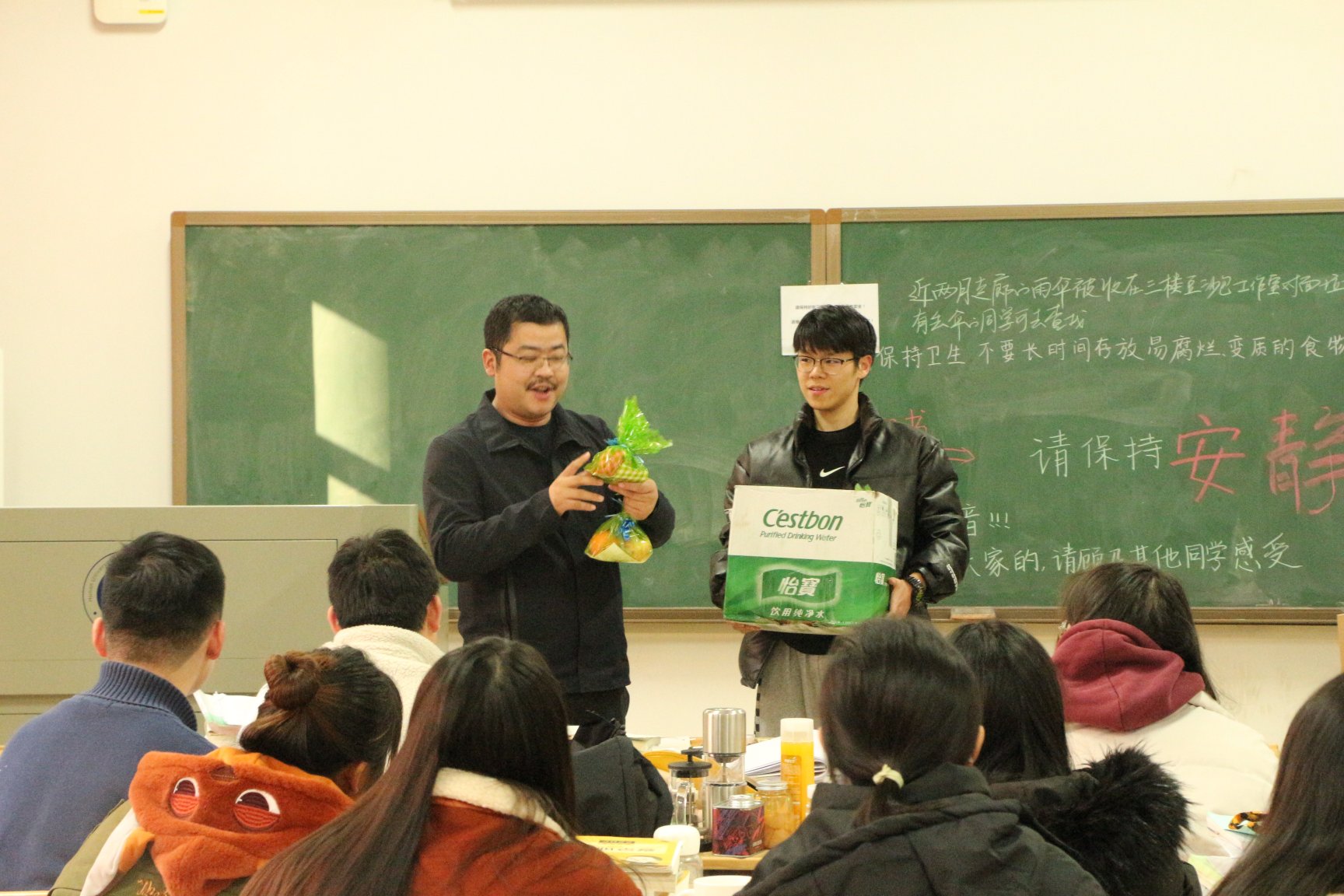 平日严肃安静的考研教室里,交谈声、欢笑声和掌声此起彼伏,埋头苦读的同学们脸上露出久违轻松的笑脸,期待他们轻装上阵、一战上岸!