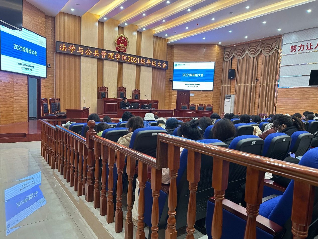 党委书记郑海祥、党委副书记范军豪的组织与各级辅导员的配合下召开了各级年级大会。其中20、21级年级大会于立言楼模拟法庭召开,22、23级年级大会于敏行楼C512召开。由各级辅导员担任主讲,360吧