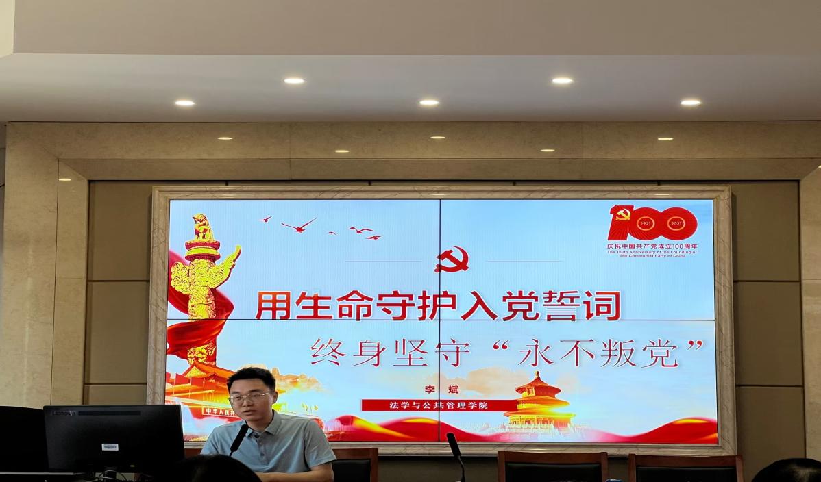 党员干部的理论武装,深入推进党史学习教育常态化、长效化。6月9日下午,我院全体教职工党员于立言楼A425开展以“用生命守护入党誓词 终身坚守‘永不叛党’”为主题的“微党课”,本次党课由本科生第一党支部书记李斌老师担任主讲。