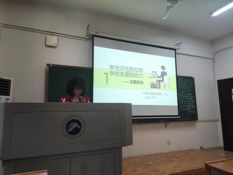 2023年9月7日上午9:00,2020级公共事业管理专业在立言楼A213教室顺利开展了本学期第一次班会。本次班会以“审核评估我知晓,学校发展我助力”为主题,旨在帮助学生学懂、弄通审核评估相关内容,了解360吧