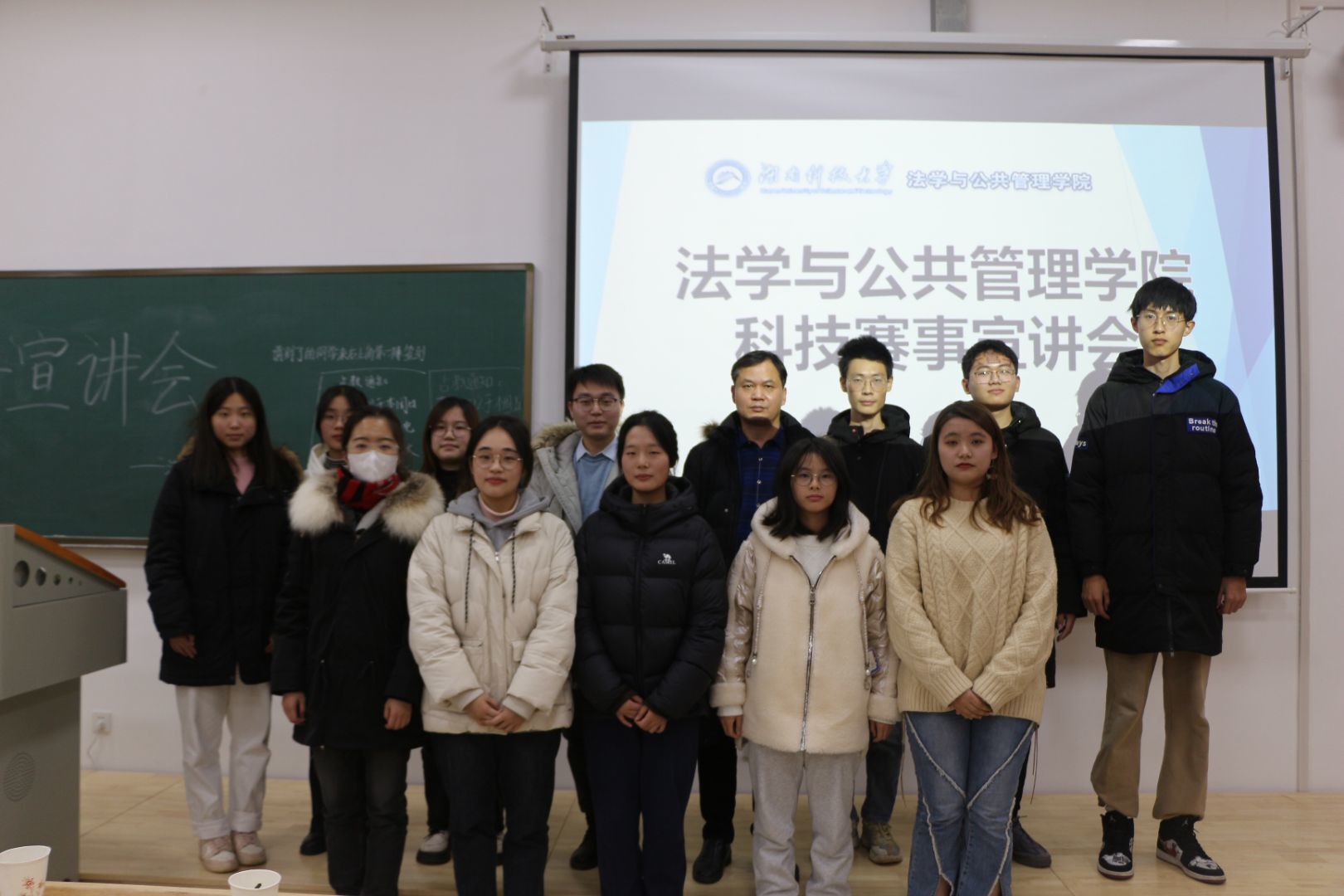 活动伊始,由主持人依次介绍各位到场嘉宾并对他们的到来表示热烈的欢迎。随后,两位科技部宣讲员从赛事内容、赛事特点、项目要求以及开展时间等方面分别对学校现有八大科技赛事进行介绍,让同学们对科技赛事有了更为全面的了解。不仅如此,宣讲员还详细介绍了参加赛事的诸多益处,并向大家推荐适合法管学子参与的赛事,努力激发、调动起同学们参与科技赛事的热情。