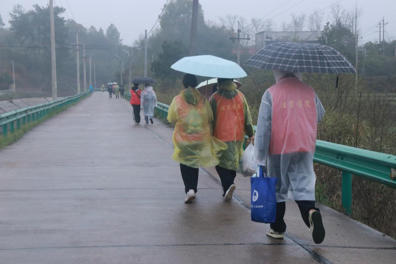 的青年志愿者们撑着伞并肩前行,步履坚定地走在这条从母亲河湘江分流而出的人工河流河畔。法管学子以并肩协作的行动,将爱水护水、守护家园的初心融入护河的每一步,让青春的底色在生态保护的实践中愈发鲜明。