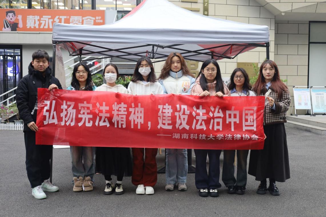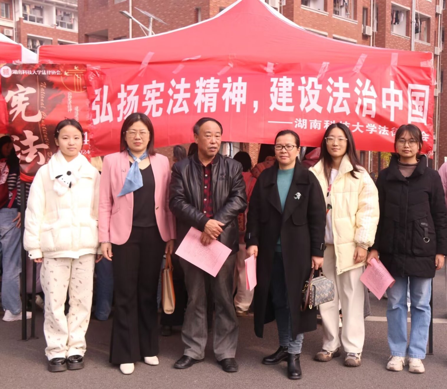法律协会分别在湖南科技大学八珍楼和三白馆开展宪法宣传活动,院党委书记郑海祥、副院长宋智敏、院党委副书记范军豪、学工办主任郭志军到场指导。