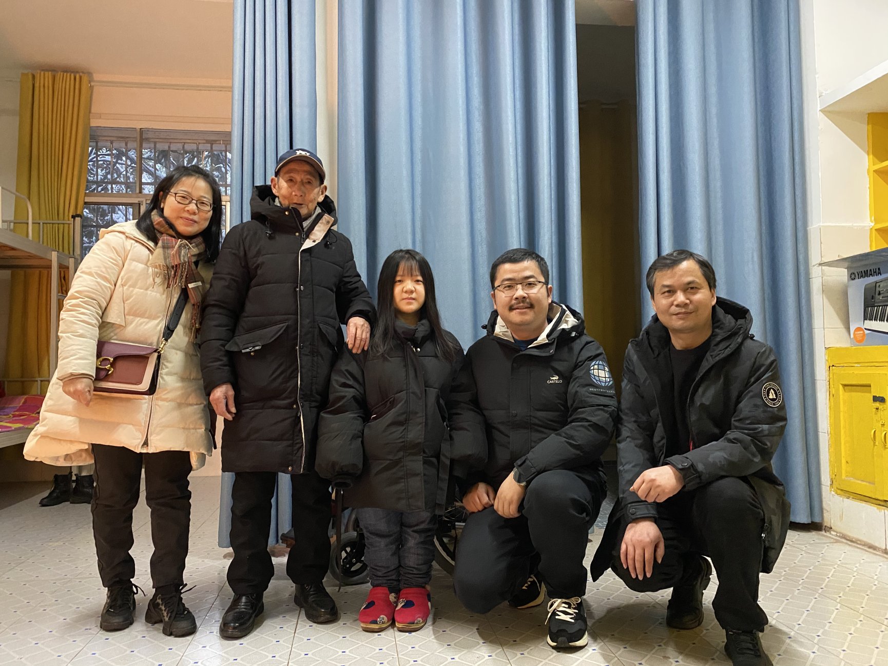 党委书记邱帅萍、副书记叶军和学工办辅导员老师们一起,来到七区学生宿舍,看望“袖珍女孩”肖盼同学。