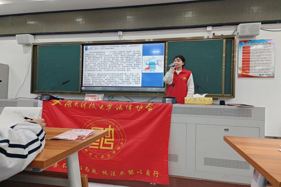 喻军教授带领法律协会普法志愿者们在湘潭市湘钢一中开展了一场“筑牢人民防线,维护国家安全”的法律宣讲活动。