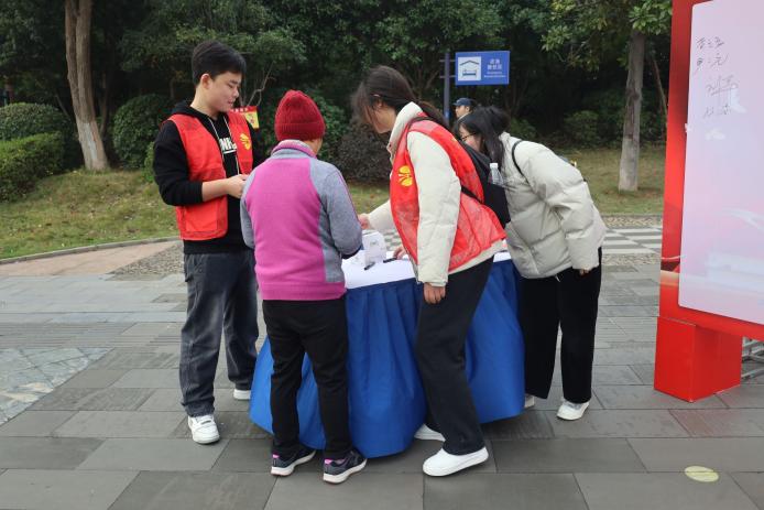 的志愿者们分工明确,协同非遗展示,讲解与宣发宪法宣传册,将弘扬宪法精神落实到实际行动中。