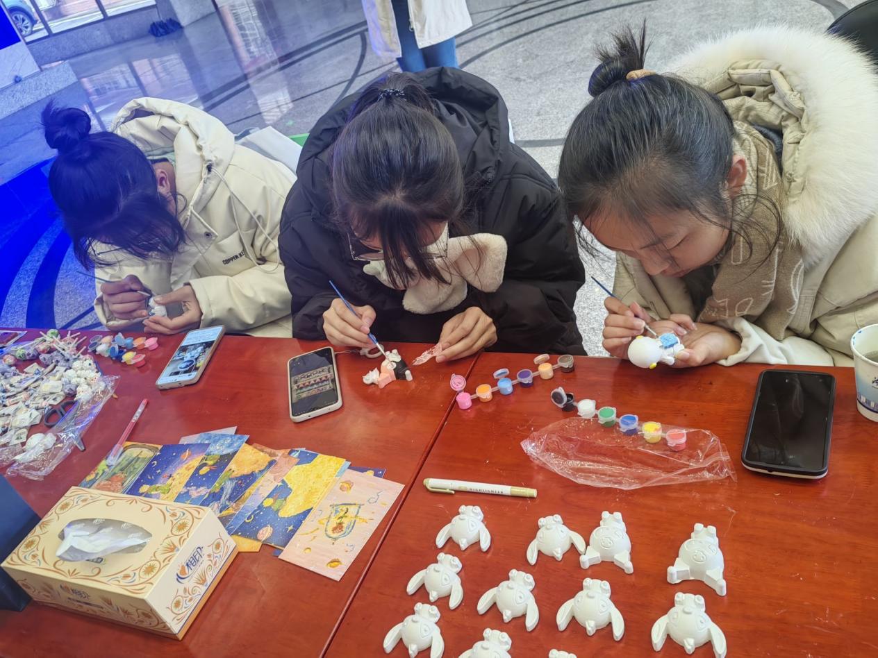 心健部准备了许多明信片、石膏娃娃以及各类小礼品,同学们俯首在明信片上写下心中向往与无私祈愿,又挑选出专属于自己的石膏娃娃和颜料,现场描绘出心目中娃娃最可爱的模样。活动过程中,同学们安静地涂画,不时翘起嘴角微笑,活动现场充满愉快和谐的气息。赤橙黄绿青蓝紫,斑斓多彩,统统覆盖于纯白石膏之上,同学们用画笔描绘飞扬的朝气、为颜料注入涓涓的希冀、以欢笑增添生活的乐趣!