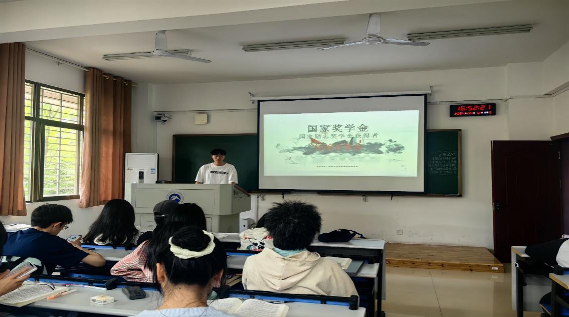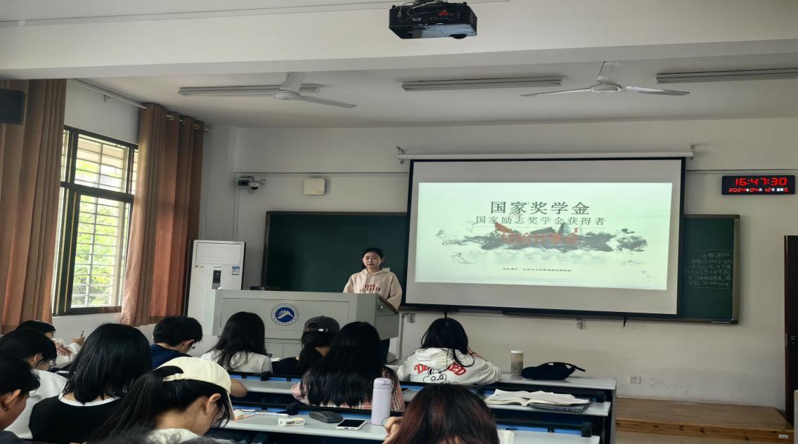 于立言楼A101举办国家励志奖学金获得者经验分享会,特邀21级法学二班李莹甜、22级法学一班王杰阳、22级法学四班徐苗和22级法学六班柳梦洋等四位优秀国家励志奖学金获得者做经验分享。