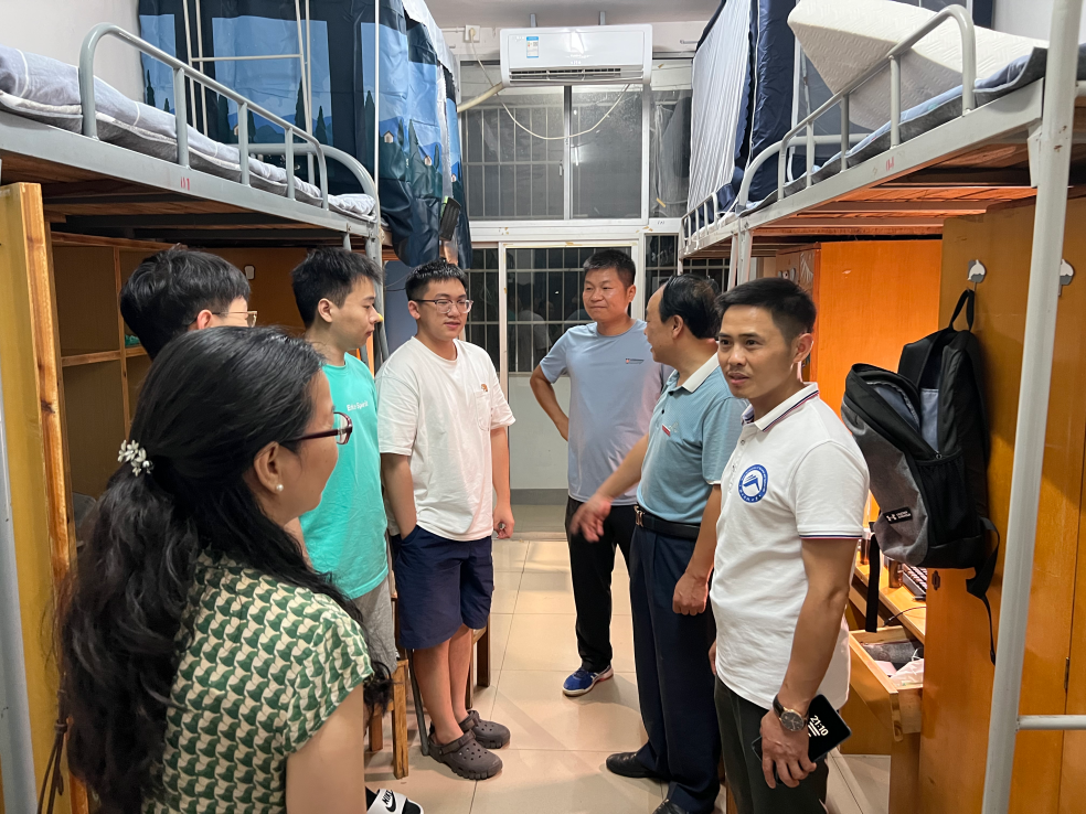 书记郑海祥、副书记范军豪、副院长王明、辅导员郭志军老师于16日晚20:00下寝慰问。郑海洋书记和诸位领导首先为诸位新生的到来表示热烈欢迎,同时也为新生答疑解惑,提醒新生注意宿舍安全,防火防盗,警惕信息诈骗等,并强调新生要严格遵守学校宿舍的规章管理制度,共同创造安全、稳定、和谐的寝室环境。其间,郑书记亲切地询问了新生们的基本情况,以及是否适应新环境,有没有遇到什么困难等问题,进一步拉进了和同学们之间的距离,充分的展现了360吧