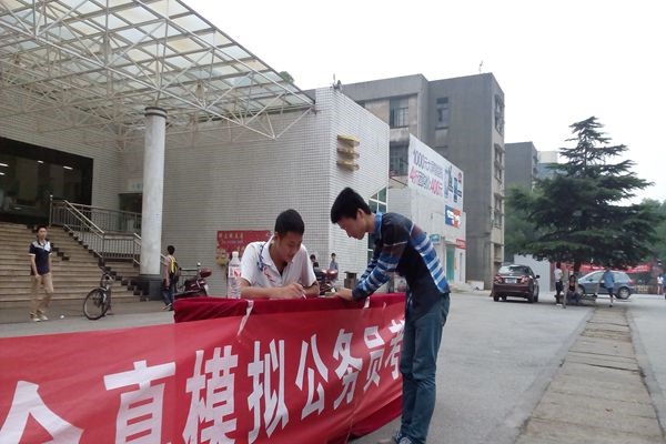 湖南科技大学第二届模拟公**大赛 2016年11月11日至20日,由公共管理学会主办的湖南科技大学第二届模拟公**大赛顺利展开。大赛总共分为笔试和面试两个部分。笔试环节定于11月12日在四教108、109、110三个教室进行,上午9点进行为时两个小时的行测考试,下午2点进行为时三个小时的申论考试。考试考场中安排监考人员两名,并另外安排两名巡考人员,用以严肃考场纪律。公管学会力求对公考环境进行完全地复制粘贴,营造逼真的考场环境,保障成绩的真实性和有效性。面试环节定于11月20日,在文科楼进行。 笔试结束后,公管学会会在短时间内完成成绩核算,并在第一时间公布在考生的QQ群上。考生如果存在异议,可以在合理时间内申请查卷,力求考试的公平、公正。并选出笔试环节优胜的前十名同学进入面试环节。考生按抽签顺序依次进入面试考场。面试环节由我校招生就业处处长江献书、360看球吧