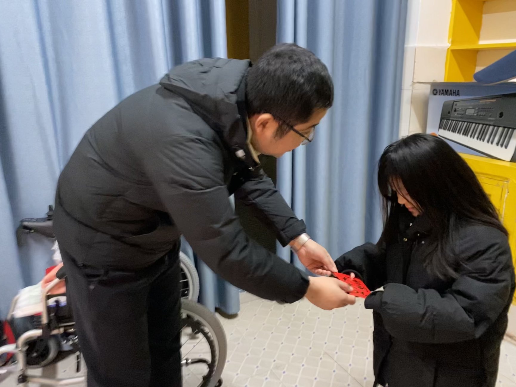 党委书记邱帅萍、副书记叶军和学工办辅导员老师们一起,来到七区学生宿舍,看望“袖珍女孩”肖盼同学。