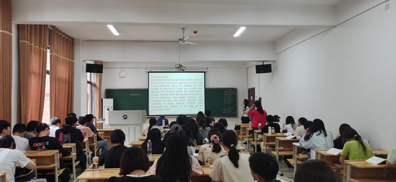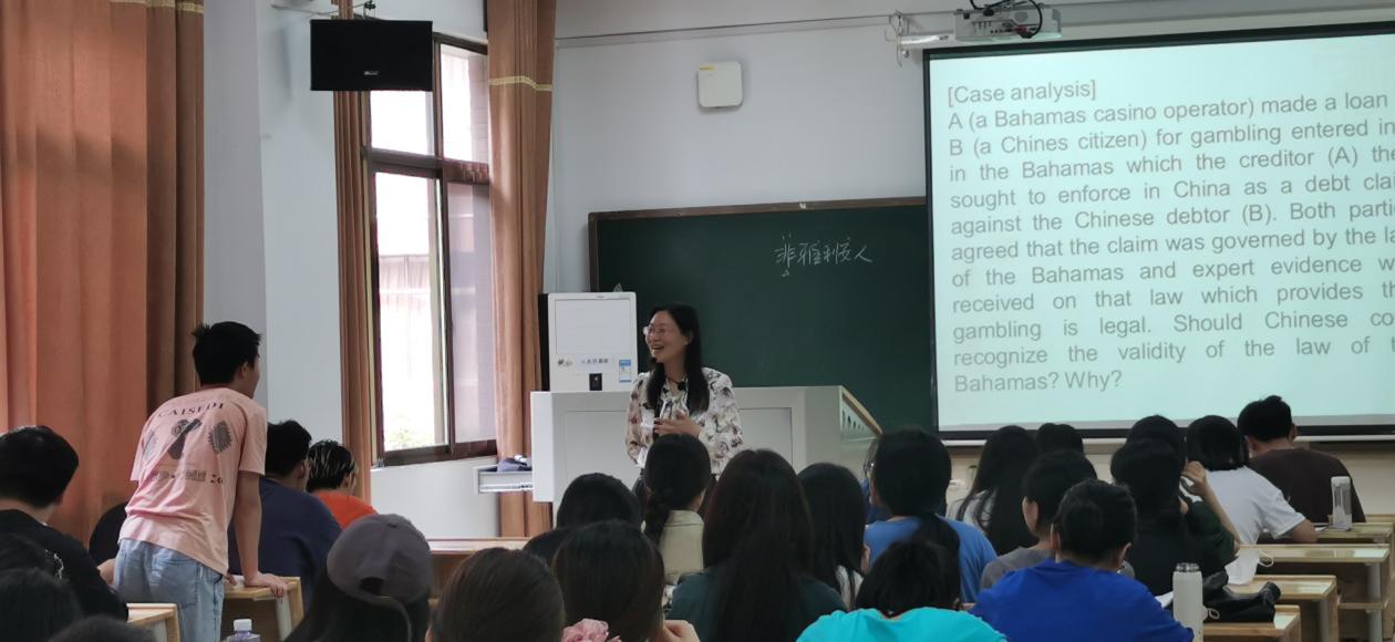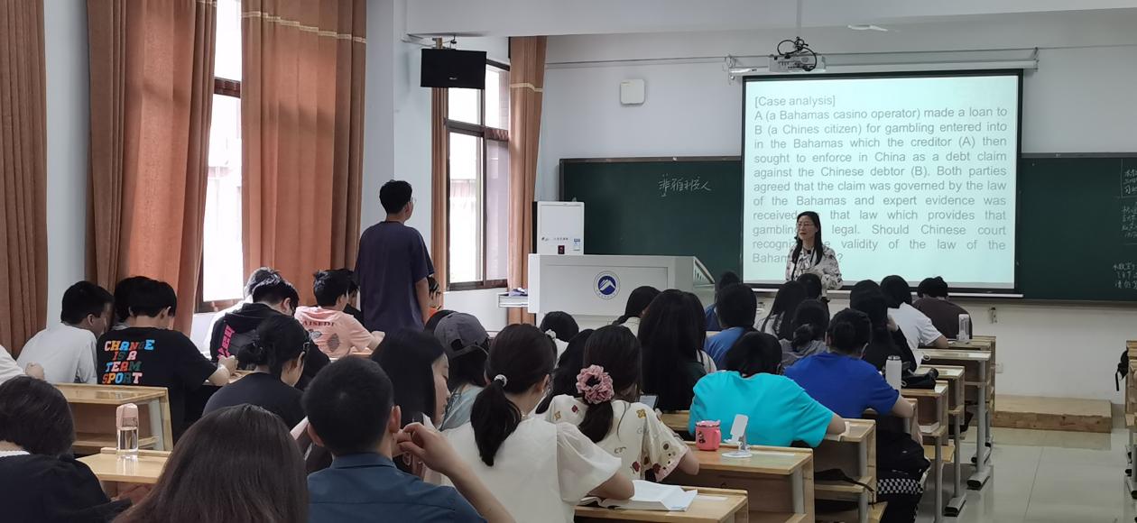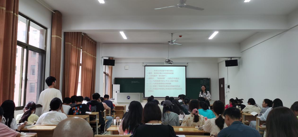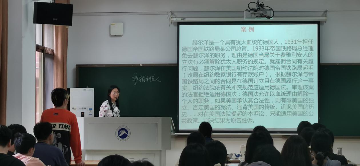 在立言楼A211举行2023-2024学年第二学期“教学礼拜”金课观摩活动,由黄素梅教授主讲《国际私法》公开示范课,院领导和没课的教师参加了此次观摩。黄老师在课堂上结合实例旁征博引、娓娓道来,与学生频频互动,展示出金课风采,参与观摩的青年教师表示受益匪浅。