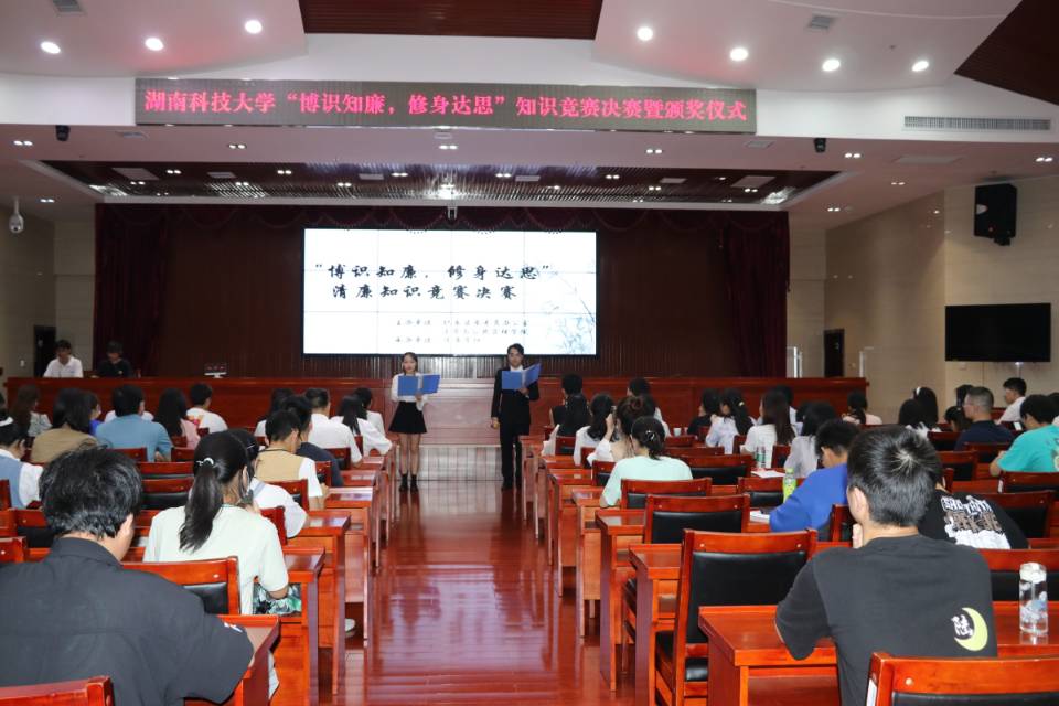 主办,清廉高校研究中心、清廉学社承办的湖南科技大学“博识知廉,修身达思”清廉知识竞赛决赛暨颁奖仪式在立德楼五楼报告厅成功举行。学校党委委员、副校长廖湘岳,学校监察专员办公室主任何正良,副主任段尊群,党委巡察办副主任周筱芬,学生工作处副处长夏莉,法律服务中心主任马驰升、360吧