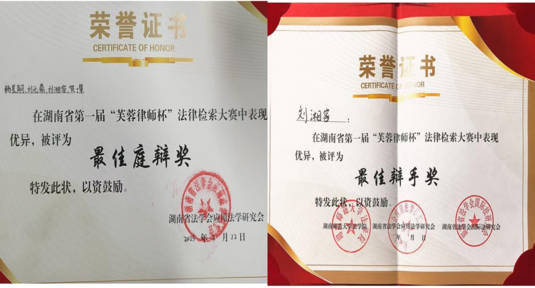 代表队在湖南省第一届“芙蓉律师杯”法律检索大赛中获得多个奖项