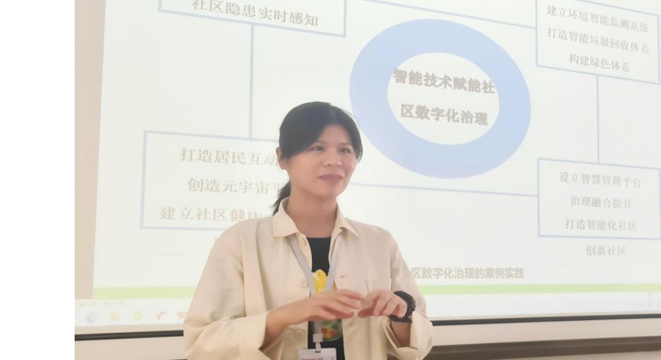 师生曾东霞、林嘉玲提交的《智能技术赋能城市社区数字化治理的本质内涵与实践策略——基于G市S社区“智慧社区建设”的案例研究》一文获中国社会工作教育协会 2024 年会党群社会工作与基层治理现代化分论坛征文一等奖,林嘉玲在研讨环节就文章研究内容进行分享发言。