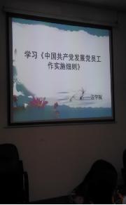 党委书记黄伟老师、党建办成员及各支部主要成员参加了此次会议。 会议由黄书记主持。党建办主任丘雅琳同志负责讲解《细则》中关于党员发展新的要求和规定。她分别从入党积极分子的确定和培养教育,发展对象的确定和考察,预备党员的接收、教育、考察和转正,发展党员工作的领导和纪律等五个方面重点讲解了党员发展中的注意事项,丘雅琳同志说道:“在今后的党员发展中,我们的任务会有所加重,因此我们更要增强责任心,相互配合,把工作完成好。” 在讲解快接近尾声时,丘雅琳同志让各支部负责人就不明白问题进行了现场提问,并给予了细致解答。通过现场解答,加深了与会党员对《细则》的理解,对党建工作有了更进一步的认识。 最后,黄书记在总结中对丘雅琳同志的讲解给予了肯定,同时对360看球吧