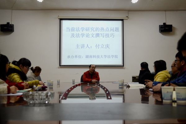 副院长喻军、法学系副系主任邱帅萍及多位法学系专业教师出席本次讲座。 付立庆副 教授 主要就当前法学研究尤其是刑法学研究中的社会热点问题展开讲座。他就目前“犯罪论体系变革”的形势提出“犯罪成立四要件”传统理论的去留问题。这一问题在当今社会引发了不同声音, 传统学者认为犯罪构成要满足犯罪主体、主观方面、客体、客观方面这四要件,而新的学理研究则以新的三阶层代替了通常四要件, 不同的高校保留自己的观点。同时,付 教授还提 出了对刑法本质的研究探讨,究竟是行为无价值还是结果无价值,付 教授 借助很多生活中的案列及对刑法三阶层的研究, 明确指出 刑法的本质要根据其行为的有责性 及量化因素 , 而不是绝对的由行为或结果来决定 。 由此引发了对 “犯罪概念的定量因素”合不合理的探讨,付 教授 认为应该具体 情况具体判断 ,它 虽 有利于行政处罚与刑罚合二为一,但又会导致犯罪人“满天飞”, 利弊并存,难以定义。 针对法学论文撰写技巧,付教授将其精髓概括为五点:一、写作论文要有自己独立的学术品格,不可随波逐流;二、要有明确的问题意识,关注实物,解决问题;三、有规范的体系进行思考,树立坚定的立场;四、论文主题由不受关注但又具有实际意义的理论出发,创立自己独特的学术个性;五、必须具备宽阔的视野,要有敏锐的国际眼光才能进行跨领域的研究。随后,付老师耐心地回答了现场同学的提问,充分肯定了360看球吧