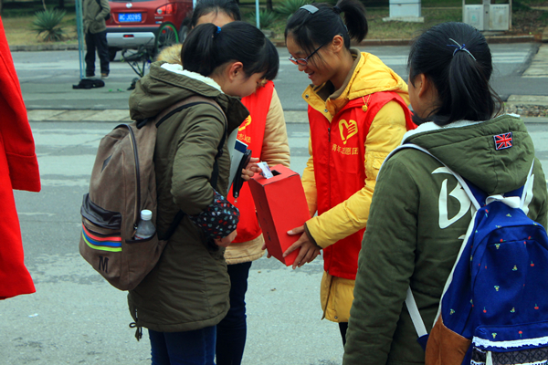 志愿团在电信路口、美食广场开展爱心义卖活动。志愿者站在凛冽的寒风中,尽管手和脸冻得通红,但看着衣物、书籍、玩具等一件件卖出去,内心无比喜悦,似乎忘却了冬的严寒。据悉,此次活动过后,志愿团将用所得资金为贫困地区的人们购买棉袄,让他们温暖地度过这个寒冬。 十年如一日 助老在窑湾 十一载春秋,志愿心未变。12月6日8时许,志愿团成员一如既往地来到窑湾社区照顾孤寡老人周满珍。他们帮年迈的老奶奶去市场买菜、米、还有她最爱的五花肉。集体打扫院子,劈柴火,忙得热火朝天、不亦乐乎。休息之余,大家陪奶奶唠唠家常,奶奶总是笑得合不拢嘴。因为志愿团,她不再孤独寂寞,十一年来他们已然成为相亲相爱的一家人。 虽是天寒地冻,志愿者却用爱温暖这世界。他们以真诚服务,用热忱奉献,也许他们的面孔不会被人记住、名字不为人知晓,但在12.5志愿者日,他们就是雷锋,请向他们道一声:“志愿者,你们辛苦了。” (责任编辑:admin) |