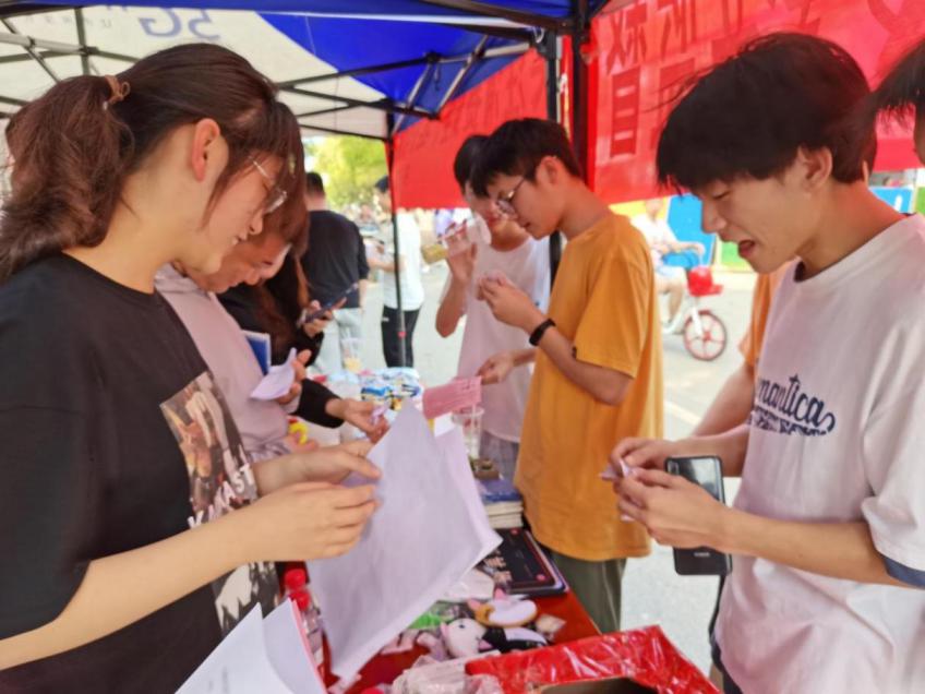 活动现场摆放着宣传展板、海报、宣传单,设置有签名活动、法律知识有奖竞答活动、套圈赢奖活动以及集赞换奖活动等。这些游戏吸引了不少同学前来参加,同学们凭借着日常所学法律知识,通过紧张刺激的答题环节后,有不少同学脱颖而出,获得了精美的小礼品。