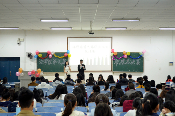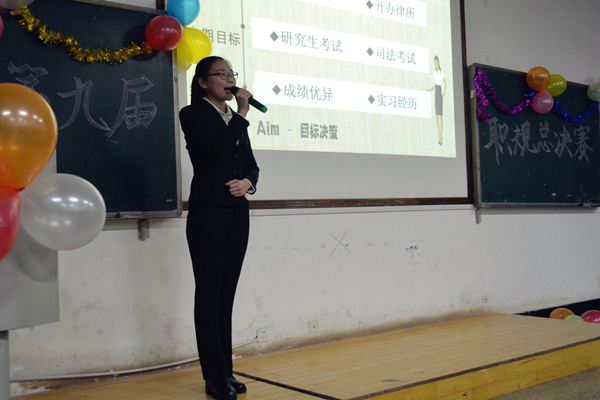党委副书记叶军,学工办主任朱荣老师,辅导员伍安老师,15级班主任代表刘鄂、毛小平、夏飞明、陈小杉老师,以及第十三届团委学生会主要干部。2015级全体学生到场观摩。 9组选手,怀揣梦想,高声呐喊出青春宣言,将天堑变通途。选手夏菁的规划中即体现出对夯实知识基础的重视、又不忘法治实践活动的意义,既着眼于当下学习又聚焦于未来职场,缜密、合理的规划加上从容不迫的演讲,一幅清晰的规划蓝图就这样展现在观众眼前。选手向鹏荻则从笔、墨、纸、砚、印5个方面描绘了他的职业人生。“我虽改变不了世界,但我能做好自己。”这一铿锵有力的宣言更表明了他做一名遵循内心道德的刑事律师的决心。“每个人都应该有一个被嘲笑、被低估,还要大声呐喊决不放弃的梦想。”选手王跃以毛虫自喻,破茧为蝶,梦想成为一名非签约作家,让自己的作品影响千万人。致力于行走在西部基层的8号组合向观众讲述了他们的梦想:成为西部律师,做一个为民谋福的团队。 决赛现场,选手们富有个性PPT展示以及精彩独到的演讲获得阵阵掌声。评委们针对选手的职业规划书和现场演讲,为选手们提出了针对性的题目,既考验了选手的反应能力,也侧面展示他们对自己未来规划的深入程度,同时也给予了选手们指导性的意见和建议。 经过激烈的角逐,夏菁同学最终斩获一等奖;向鹏荻、王跃获得二等奖;三等奖获得者是8号李启威、孔伶铭、郭思宇组合;张椰锦、丁雪珍、李霜、肖湘晗获得优胜奖;王萍获得特色创新奖。 大赛最后,朱荣老师综合各位评委的发言,对选手的目标定位、自我分析、语言表达等方面提出指导性建议,并勉励大家“大赛可以有输赢,梦想不能分高下。职业生涯规划不应止于竞赛,而应是开启人生规划新篇的起点,愿大家不忘初心、终有所获”。 (责任编辑:admin) |