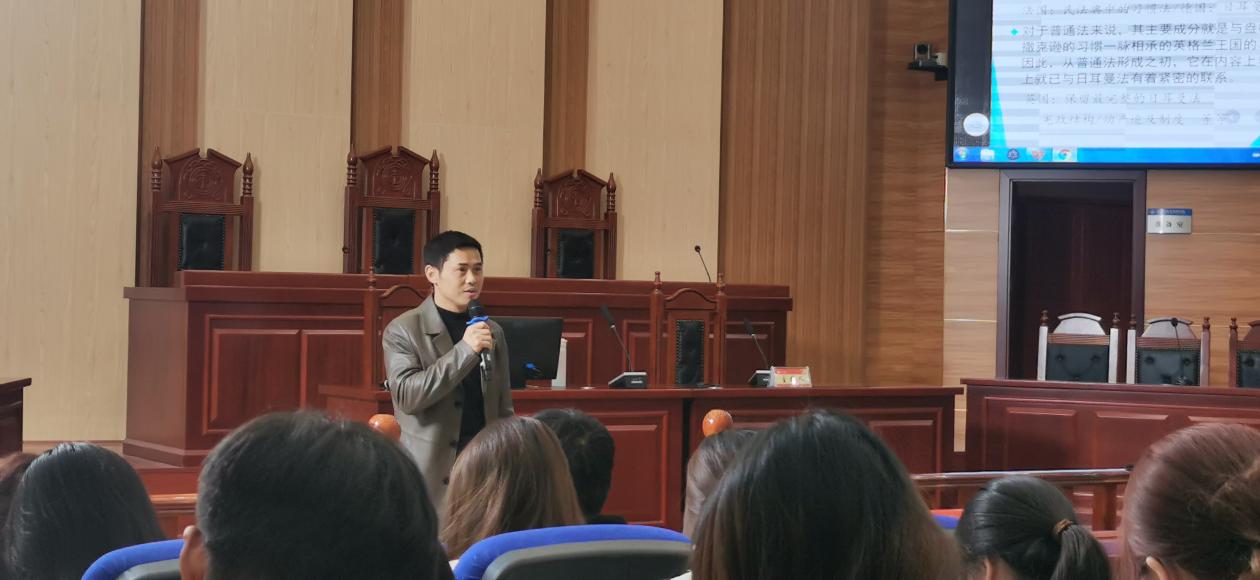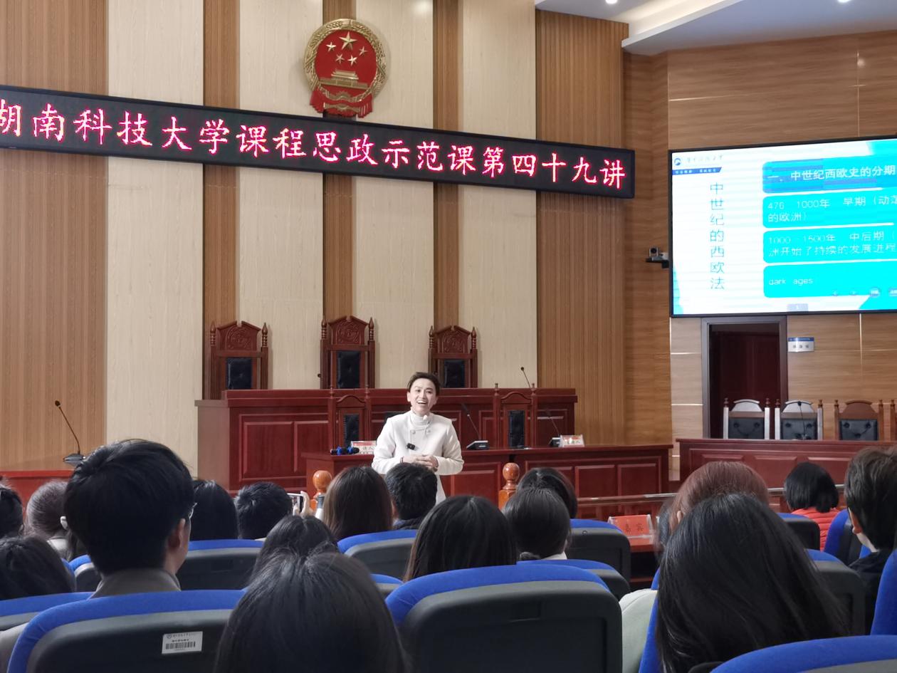 承办的湖南科技大学课程思政示范课第四十九讲在立言楼3-2模拟法庭精彩开讲。本次示范课由陈小杉老师主讲《日耳曼法》,360吧