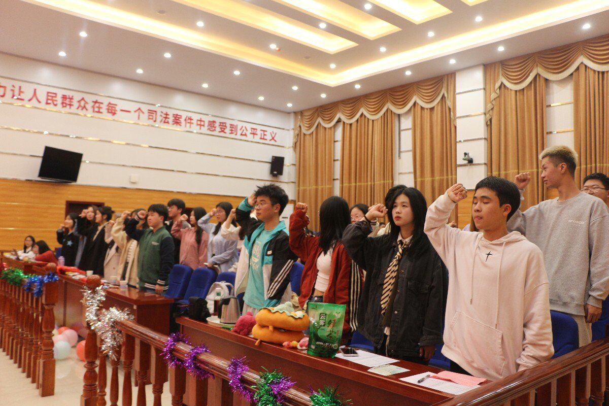 会上还举行了团旗交接仪式,交接完成后,在场志愿者进行集体宣誓。“尽己所能,不计报酬,帮助他人,服务社会”,这不仅仅是一句口号,更是日后每一位志愿者将用自己的行动践行与捍卫的铮铮誓言。优秀志愿者代表许珺仪发言,她认为作为一名志愿者,真诚和务实是真理;志愿活动不仅助人亦是益己,在帮助他人的同时时亦能提高自身素质。在最后的游戏、节目环节,同学们积极参与,现场笑声不断,每个人都在游戏和节目中放松了身心,洗去了一天的疲惫。在这欢声笑语中,会议渐渐落下了帷幕……