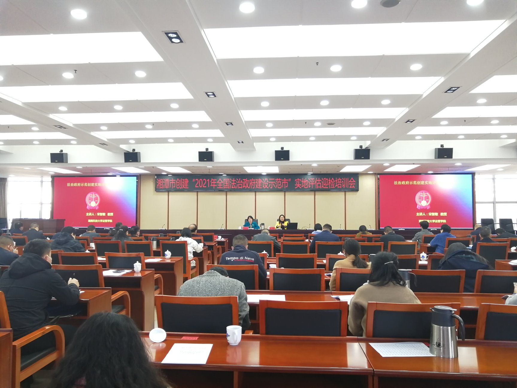 2021年12月6日,湘潭市迎接中央依法治国办法治政府建设示范创建实地评估工作推进会在市政府办公大楼五楼全会会议室举行。来自湘潭市政府32个职能部门分管法治工作的领导和各科室负责人近200名干部参加了会议。360吧