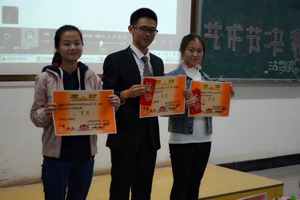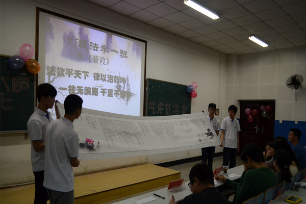 第八届班级文化艺术节决赛在八教3-3教室隆重举行,出席活动的嘉宾有学工办主任朱荣老师、辅导员伍安老师、广告部前部长林泓以及团委学生会主席团和各部部长。2015级全体学生到场参与此次比赛。 大赛开始,一段激情澎湃的宣传视频拉开决赛帷幕。大一生活的点点滴滴,历历在目,所有过往以班刊为载体,述说永不磨灭的同学情谊。 决赛分为班刊班徽的现场展示和拉票两个环节。班刊方面,无论是形式、内容亦或是排版设计,都打破了传统、独具匠心。法学四班的刊物采用了“双正面”的设计,杨沛霆同学解说道“第一封面以淡绿色为底,蕴含着低调的班风,第二封面色彩明快,象征着班级分工明确、积极拼搏的精神”;思政教育一班则是将自己班级的集体特色照片制作成日历,用四个富于质感的金属圆环穿接而成,颇具青春气息;法学一班则带来极具创意的卷轴式班刊——《蒹葭》,彰显了锐意创新、开拓进取的班级风貌,赢得了全场观众热烈的掌声,将全场气氛推向高潮。班徽方面,哲学班“以水墨画为主题,寓意着超脱、智慧的哲学思维。同时,徽章中心大写的‘P’代表着哲学的英文首字母,给人耳目一新之感”。拉票环节更是高潮迭起,思政二班改编了《北京东路的日子》;思政一班制作了视频《暴走吧!思一》;法学三班全体男生带来了笑料十足的小品《军训两三事》。 最后,法学一班喜将班刊制作、班徽设计第一名以及最佳解说等三大奖项收入囊中,思政一班和哲学班分别获班刊制作二、三等奖,法学二班和法学四班获班得班徽设计二、三等奖。思政一班获最佳编辑奖,哲学班荣获最佳创意奖。 “此次活动带给我们前所未有的惊喜,这是每个班集体智慧的凝结。没有大家做不到,只有我们想不到。希望大家把这么宝贝的作品留在360吧