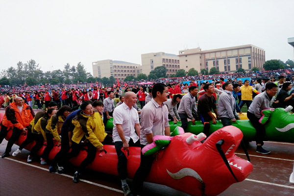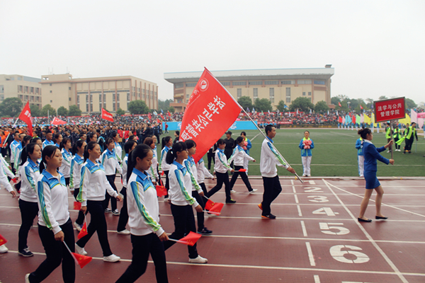 学子身着统一服饰,踏着整齐的步伐,精神抖擞地走过主席台。理性的蓝白色,构成田径场上一道靓丽的风景,无不彰显着法管学子的严谨与理智。 国旗冉冉升起,校党委书记刘德顺为运动会致开幕词,我校始终秉承“健康体育、快乐体育、终生体育”的理念。“举办运动会是我校推进素质教育,提高学生体质健康水平的一项重大举措。”同时,他也亲切地寄语运动员们要以“更快、更高、更强”的奥运精神为宗旨,在运动会中赛出风格,赛出友谊,赛出水平。 随后,运动员代表徐玉林承诺遵守运动会规则,坚持友谊第一、比赛第二。李良明裁判也庄严宣誓会以公平公正的态度秉公办事,遵循裁判准则。 音乐再度响起,色彩斑斓的气球徐徐升起,为阴沉的天空增添些许生机。一支《中国美》巧妙地将活力四射的拉拉操与典雅的水袖舞融合在一起。双龙戏珠,翻转奔腾,舞龙队的精彩表演引来场下阵阵喝彩,更有气势如虹的跆拳道表演将全场推向高潮。 据悉,此次运动会将持续两天半,来自学校各单位、各360吧