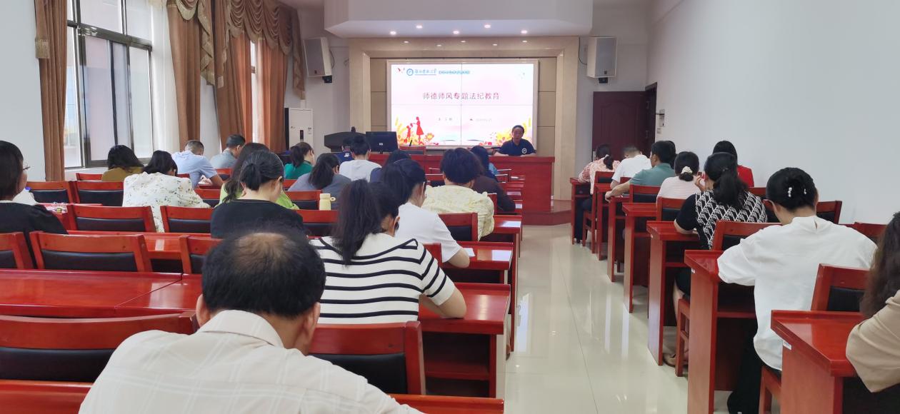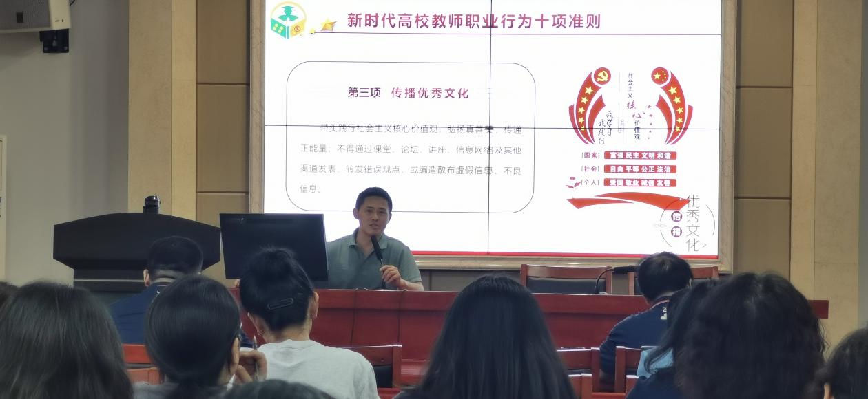 在本次集中专题法纪教育活动中,教学副院长王明作了专题讲座,带领全体教师认真学习了《关于加强和改进新时代师德师风建设的意见》《新时代高校教师职业行为十项准则》等文件,并列举了近些年来高校违法师风师德的典型案例,以此帮助全院教师深刻认识立德树人的本质内涵和具体要求,明确新时代高校教师的职业道德、行为准则和工作纪律。