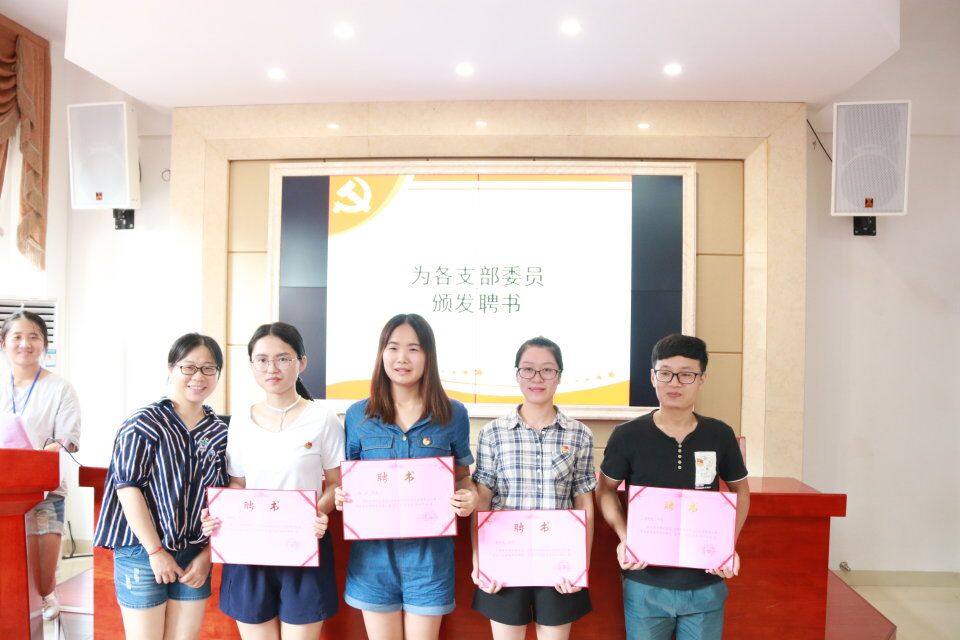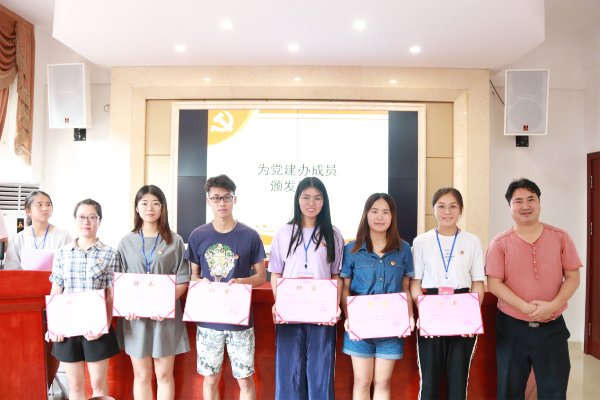 在党支部建设、党员发展方面取得的显著成就。并针对党建办部分人员在工作定位、工作性质认识方面存在误区,工作效率有待提高等问题提出了建议。总结报告后,蒋会平书记为党建办成员颁发聘书,朱荣老师为360吧
