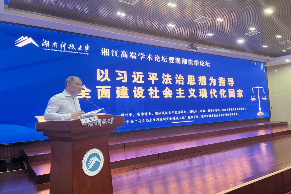 2023年10月27日下午,湖南科技大学特邀武汉大学党委常委、副校长、教授、博士生导师周叶中教授在立德楼5楼报告厅举行湘江高端学术论坛暨湖湘法治论坛,讲座题目为以习近平法治思想为指导全面建设社会主义现代化国家。湖南科技大学党委书记唐亚阳、湖南科技大学副校长谢慧、湘潭市纪委监委、市政法委、市人大常委会法制委员会、市政协社会法制和民族宗教委员会、市中级人民法院、市人民检察院、市公安局、市司法局、湘潭县、岳塘区、雨湖区政法系统的同志、学校全体中级干部、360吧